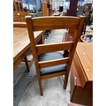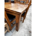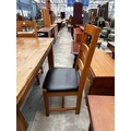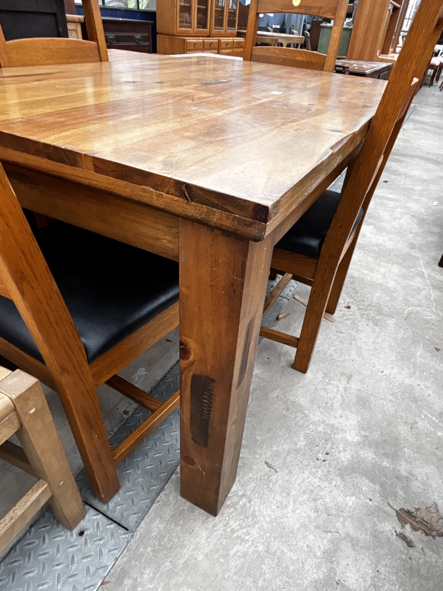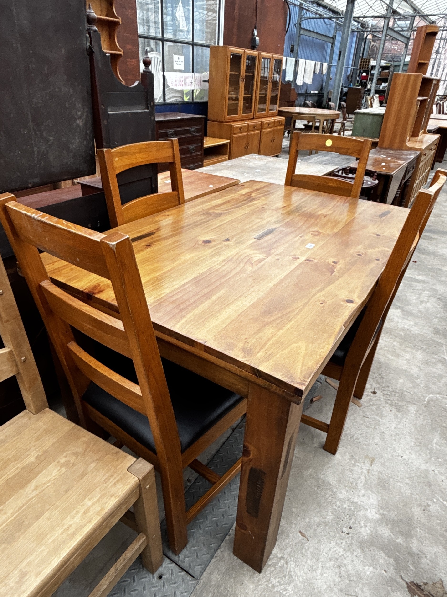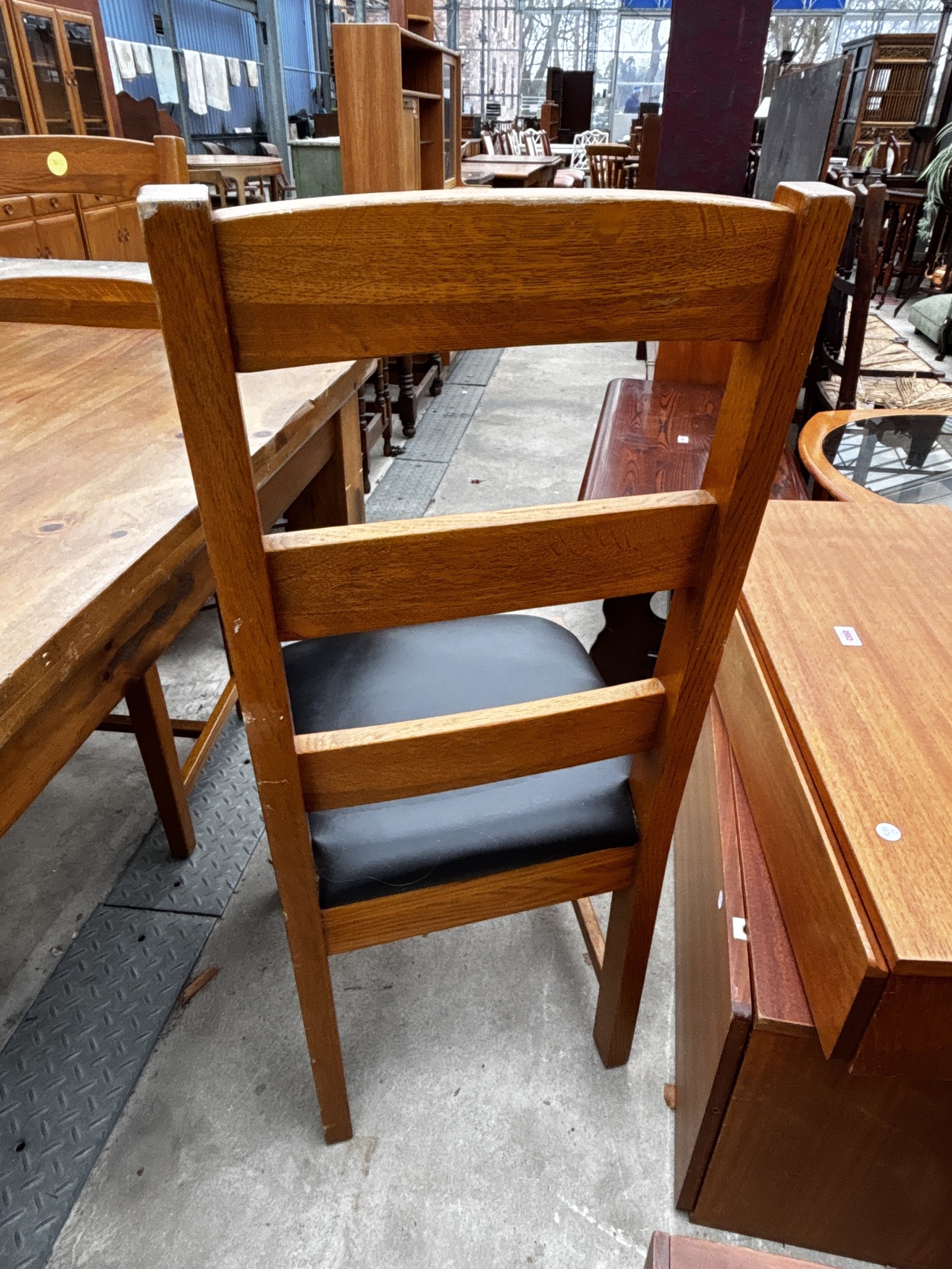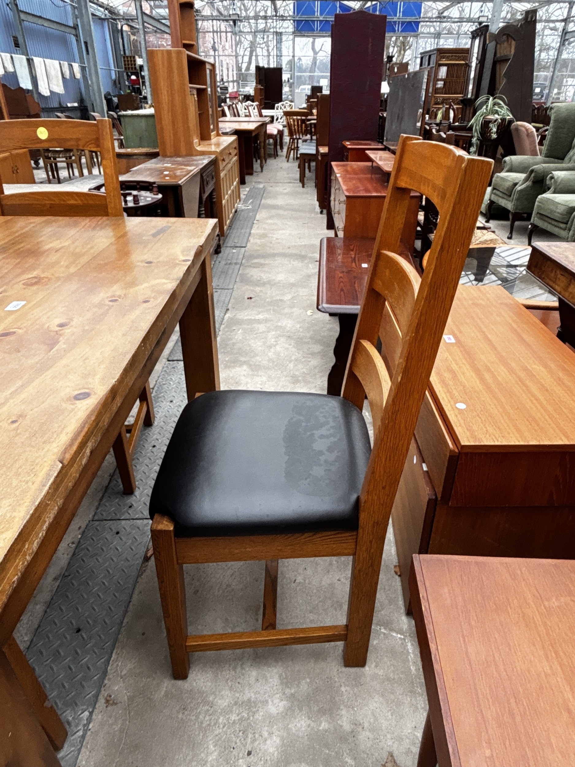 A HEAVY SOLID OAK DINING TABLE, 55" X 35" AND FIVE OAK LADDER BACK DINING CHAIRS