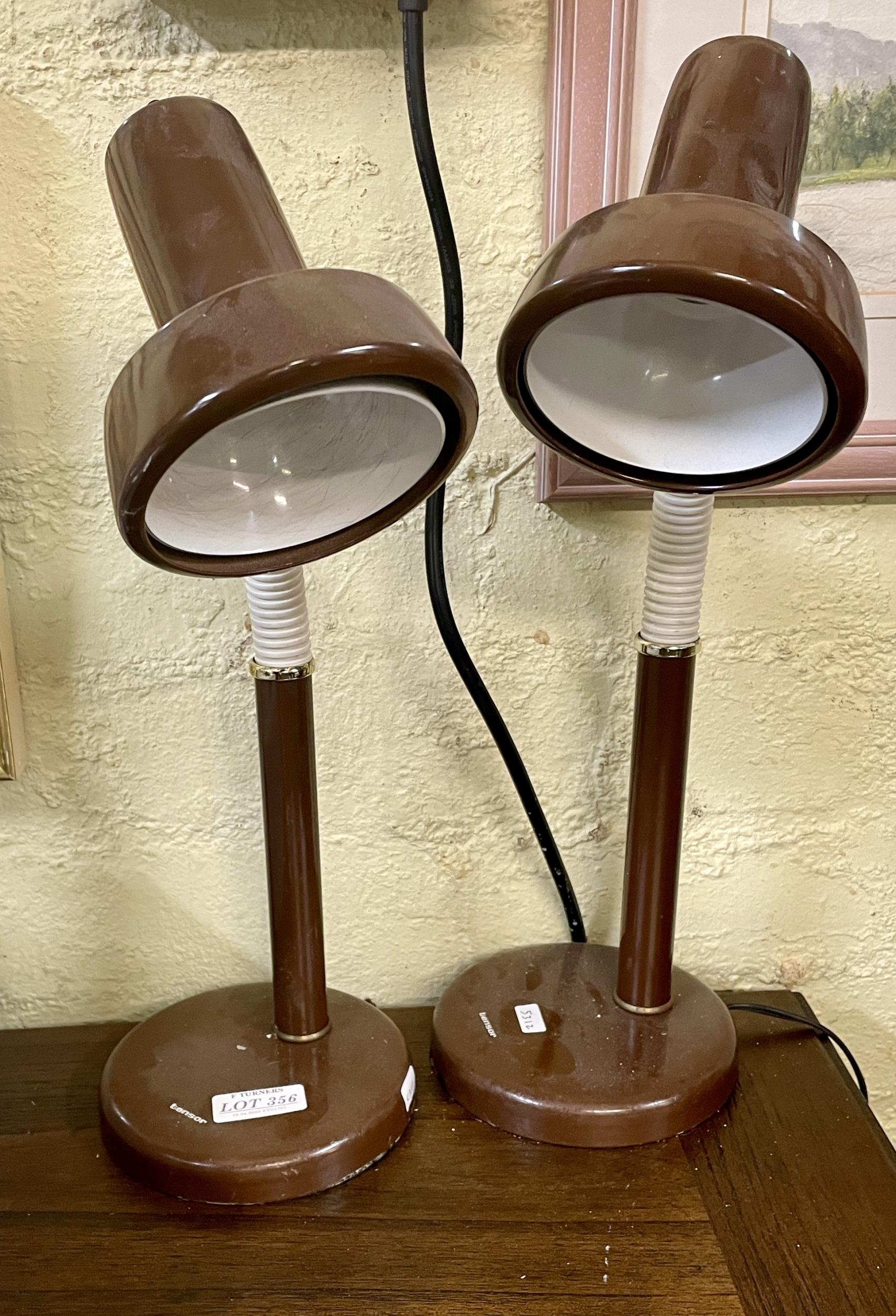PAIR OF BROWN TENSOR ADJUSTABLE DESK LAMPS - NOTE AMERICAN PLUGS