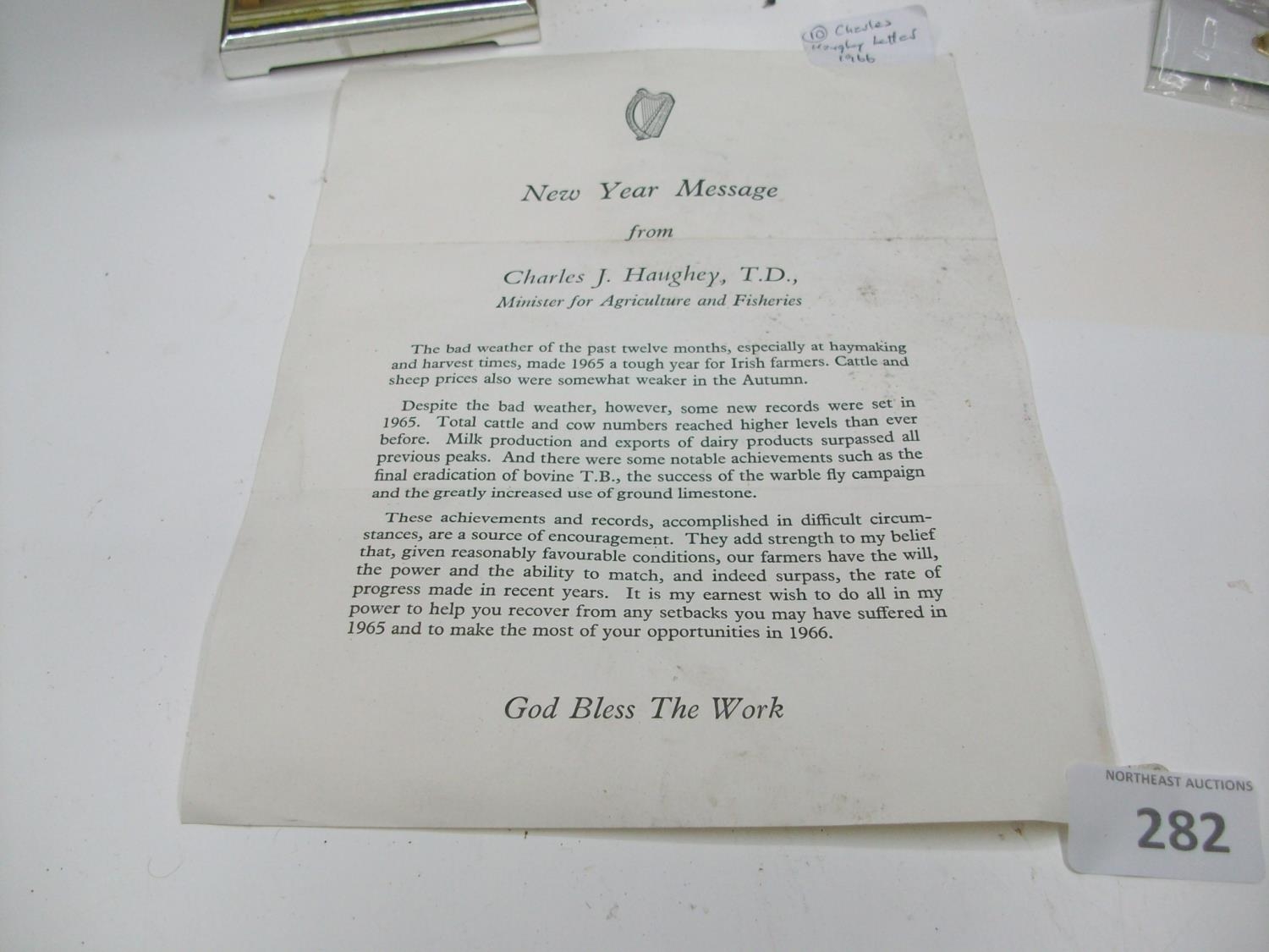 Printed Letter New Year 1966 From Charles J.Haughey T.D Minister For Agriculture & Fisheries (very rare)