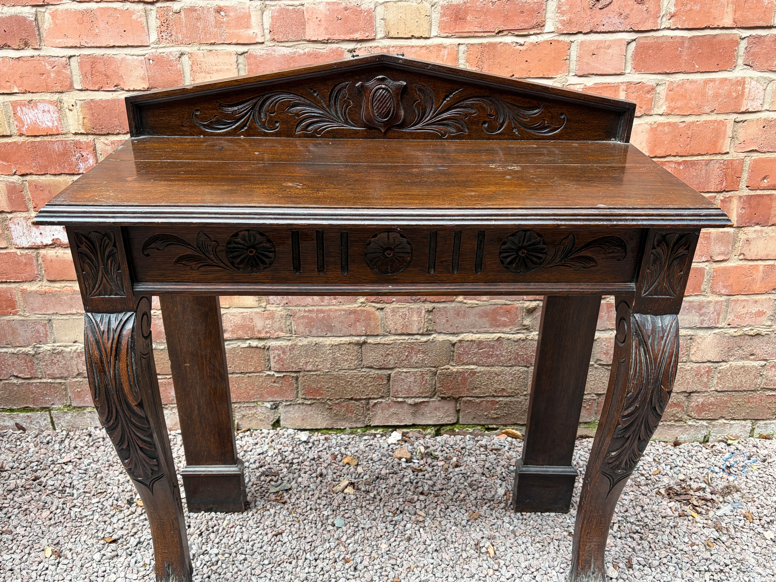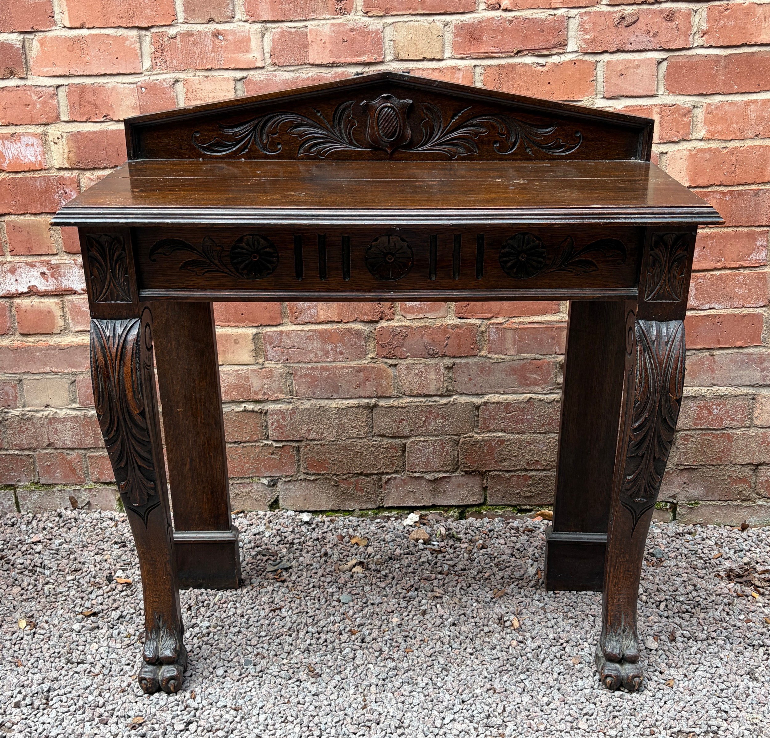 CARVED OAK CONSOLE TABLE ON ACANTHUS CARVED LIONS PAW FEET