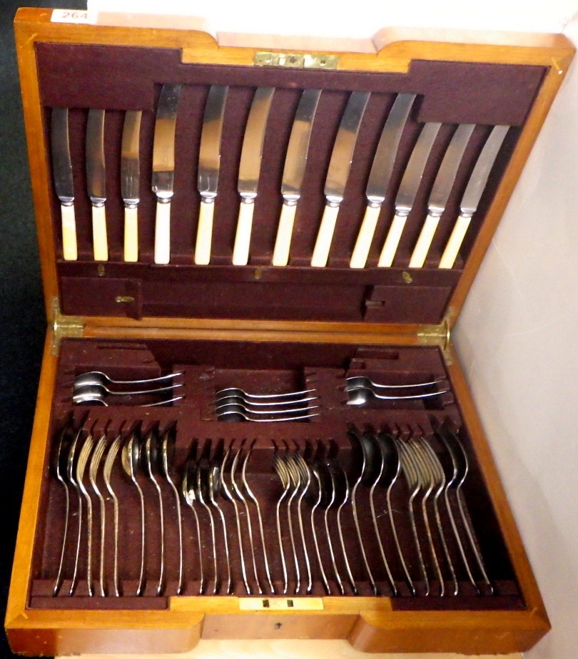 A part canteen of cutlery together with a miniature longcase...