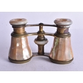 A Pair of Mother of Pearl Mounted Opera Glasses. 7.2cm x 10cm x 3.7cm (extended)