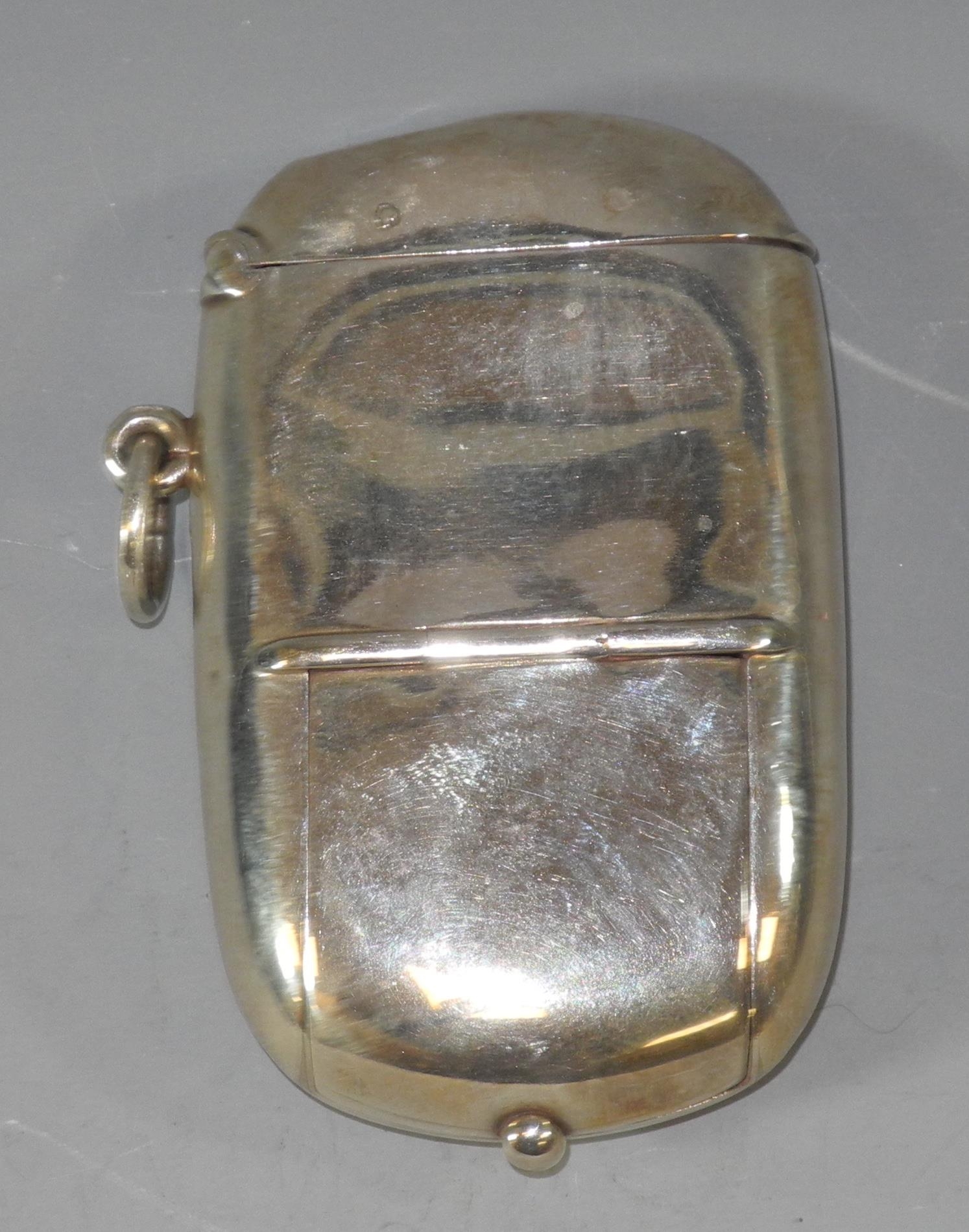 A Victorian silver rounded rectangular combination vesta/sovereign case, plain, 6cm high, William Neale, Chester 1888