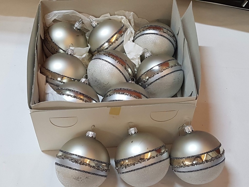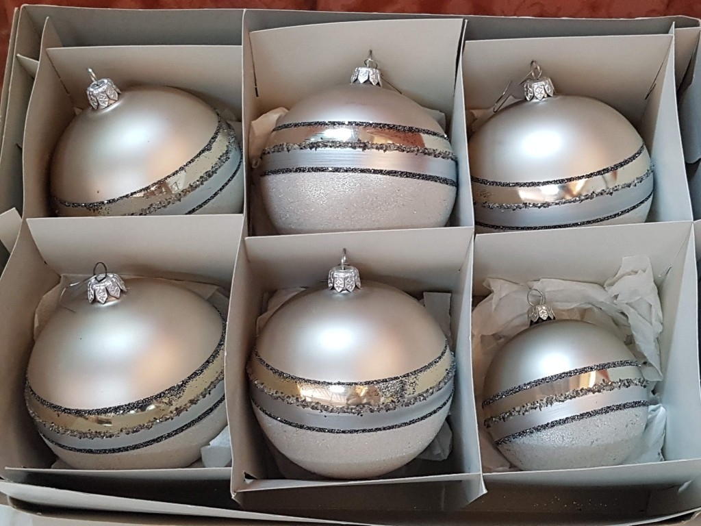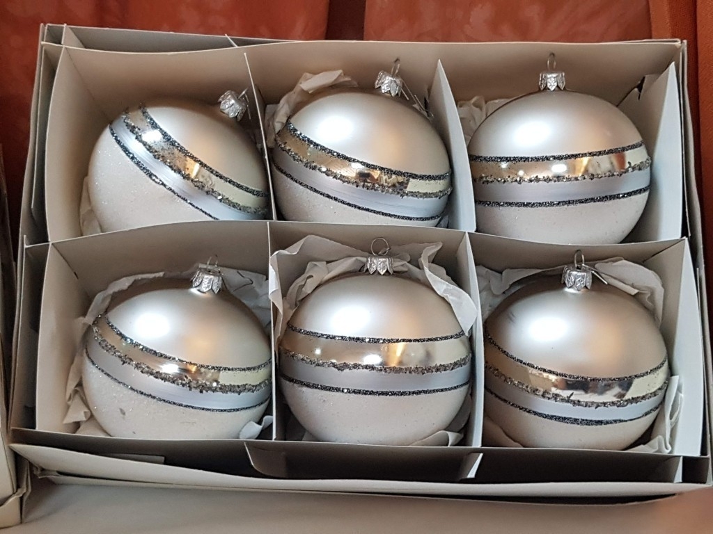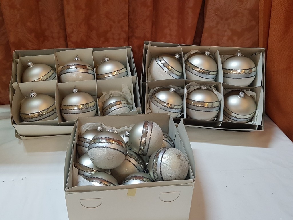 Collection of Beautiful Shiny Christmas Baubles in Silver Tone and Two Sizes.