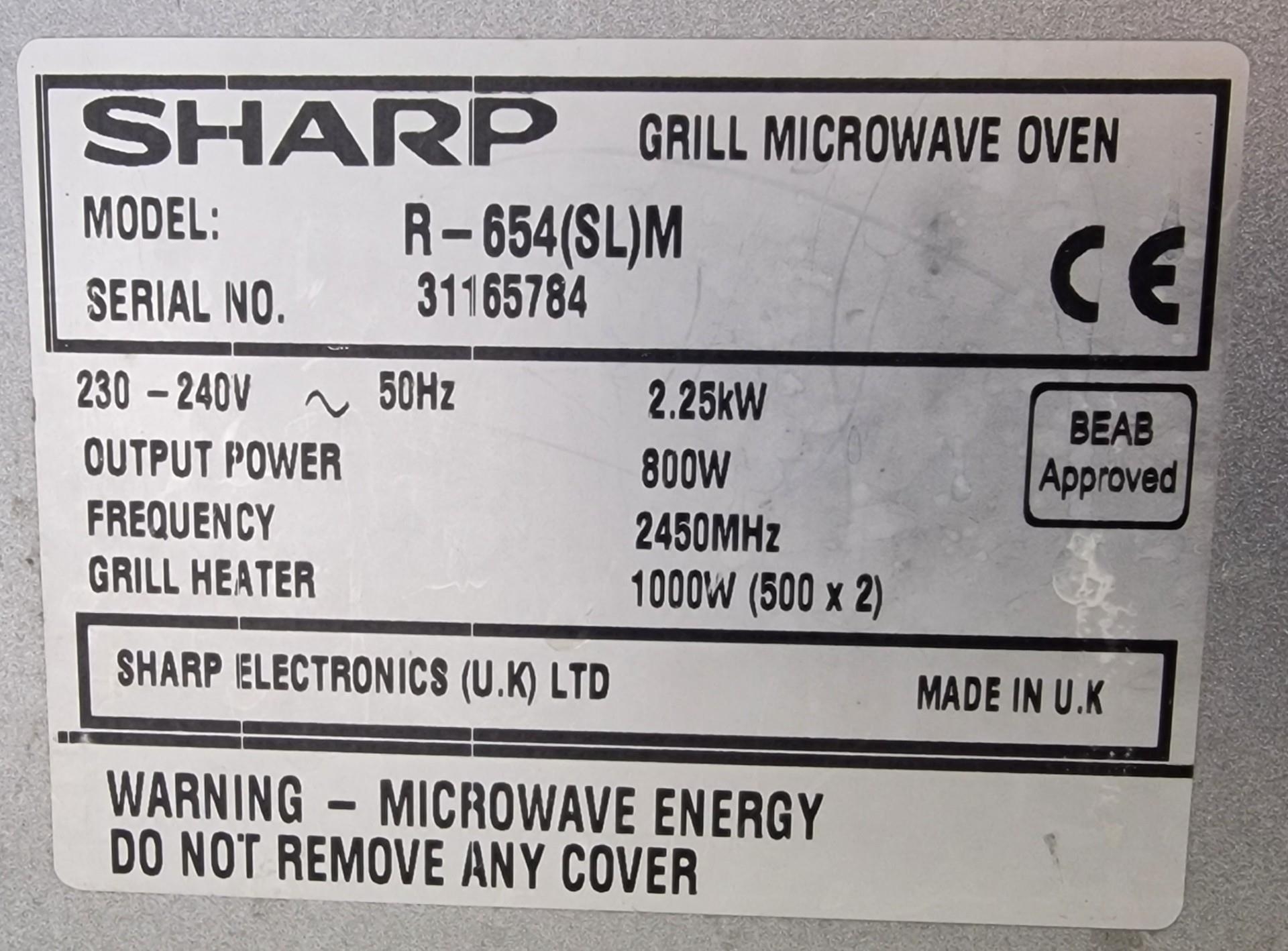 A Sharp 800W Dual Grill/Microwave, model no. R-654(SL)M. PAT test pass & functionality test indicates in working order.