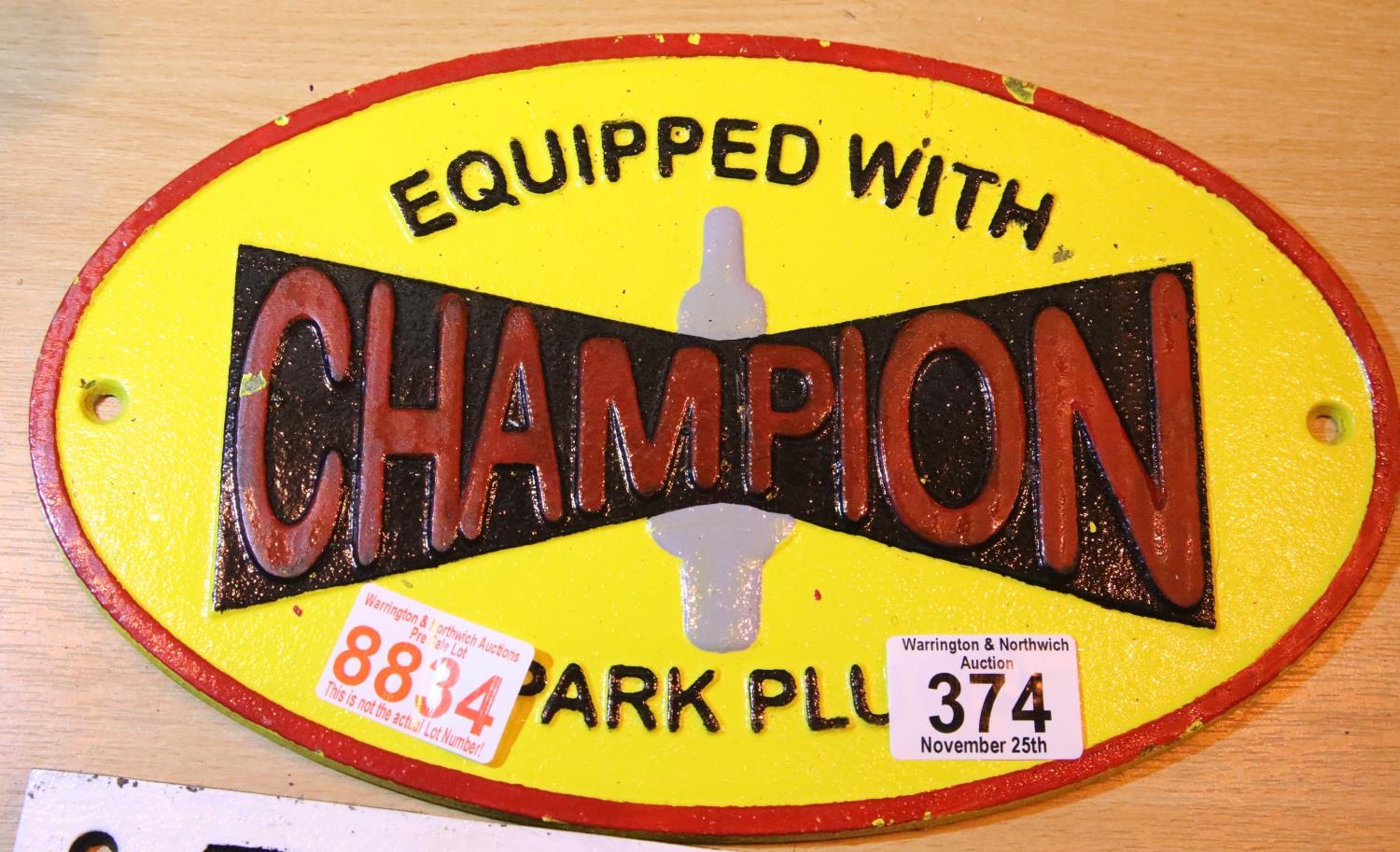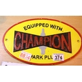 Cast iron Champion Spark Plug sign, 28 x 17 cm. P&P Group 1 (£14+VAT for the first lot and £1+VAT for subsequent lots)