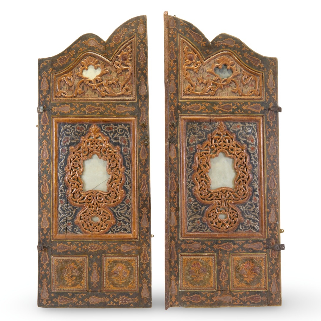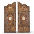 A MONUMENTAL CARVED WOOD MIRROR-INSET DOUBLE DOOR, TURKEY OR SYRIA, 19TH CENTURY