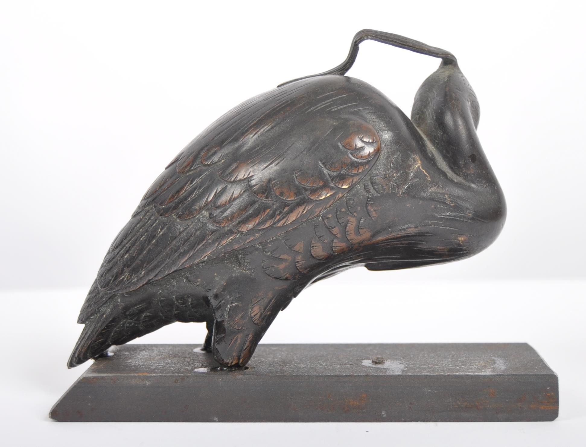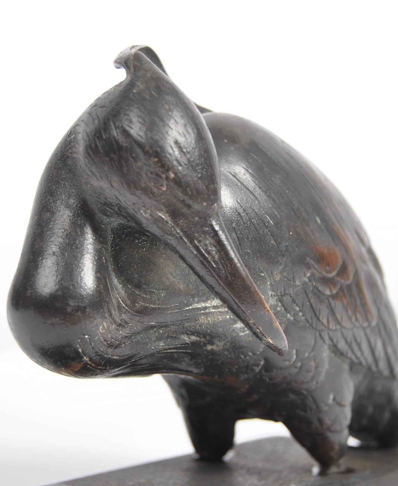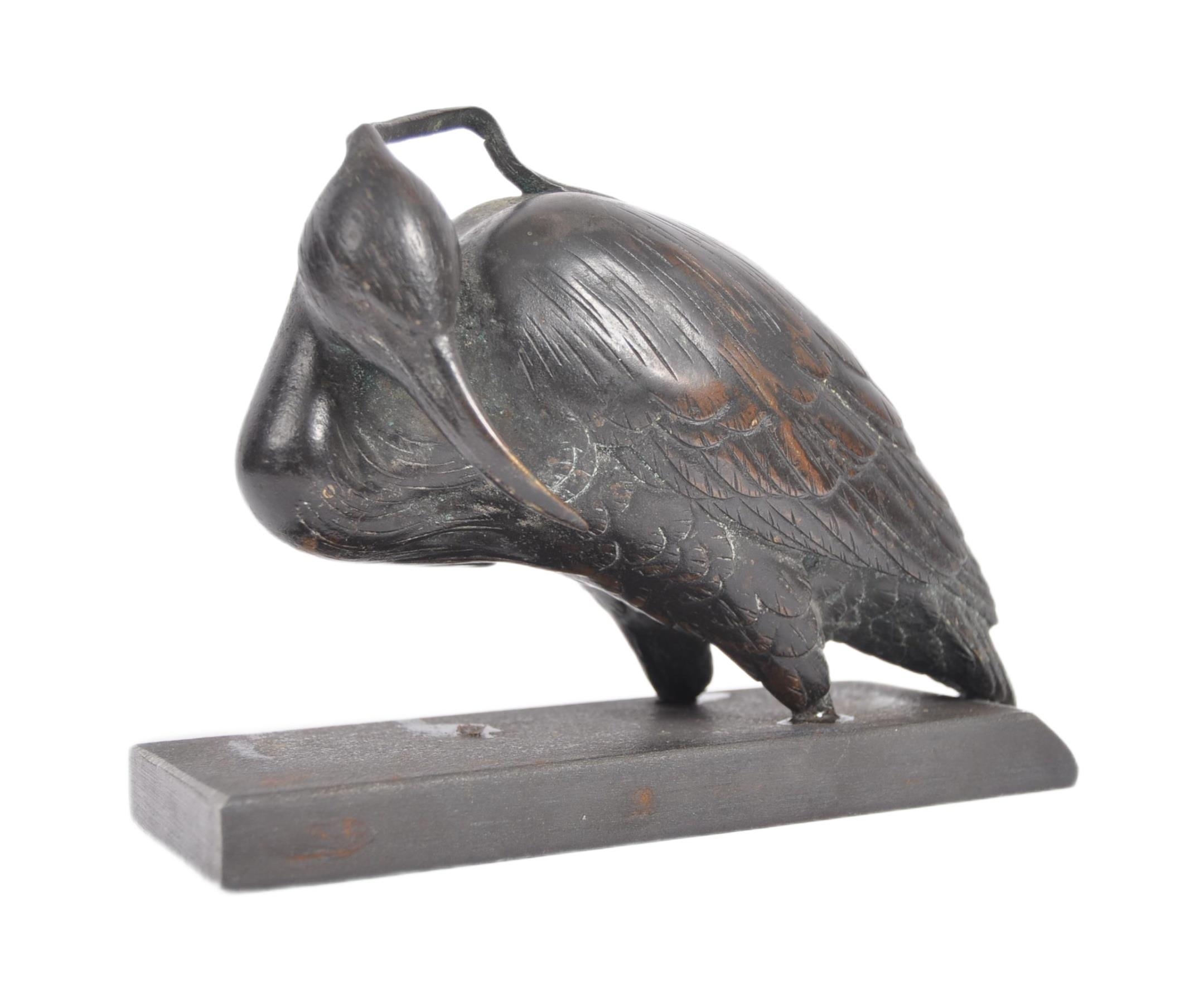 A 19th Century Japanese Meiji bronze figurine depicting a bird. The figure raised on plinth base having cast modelled features. Measures approx; 13cm tall.