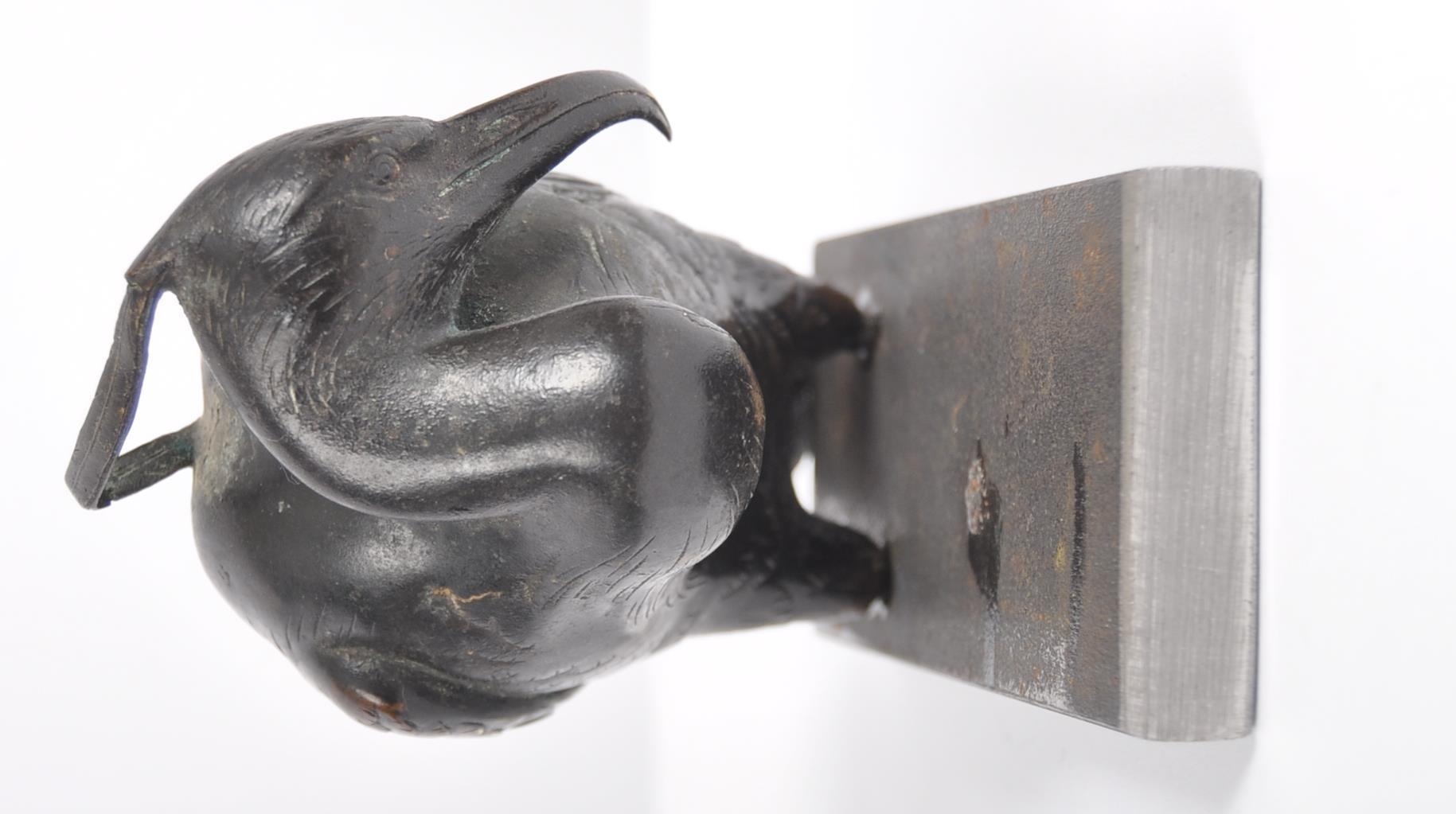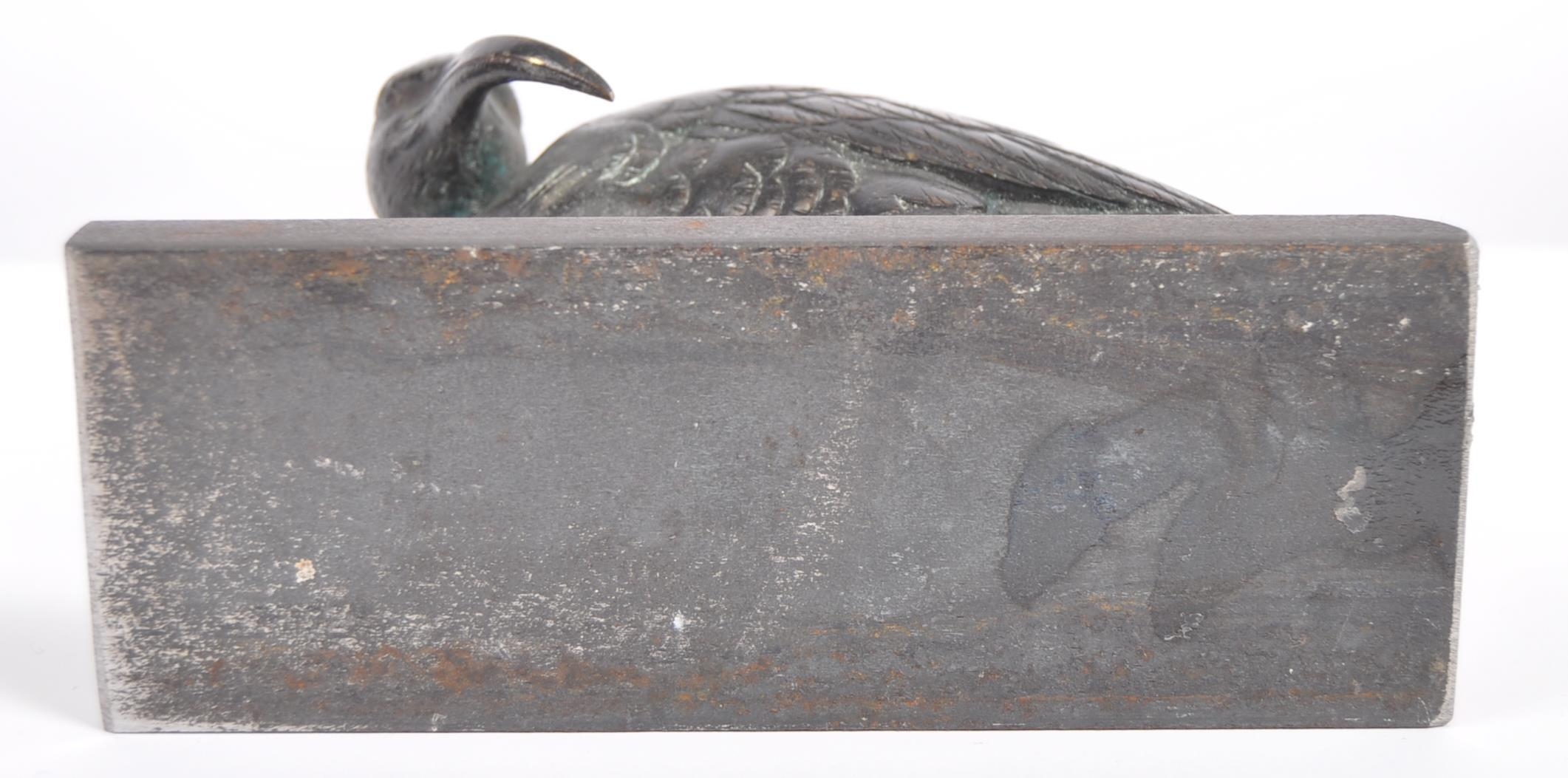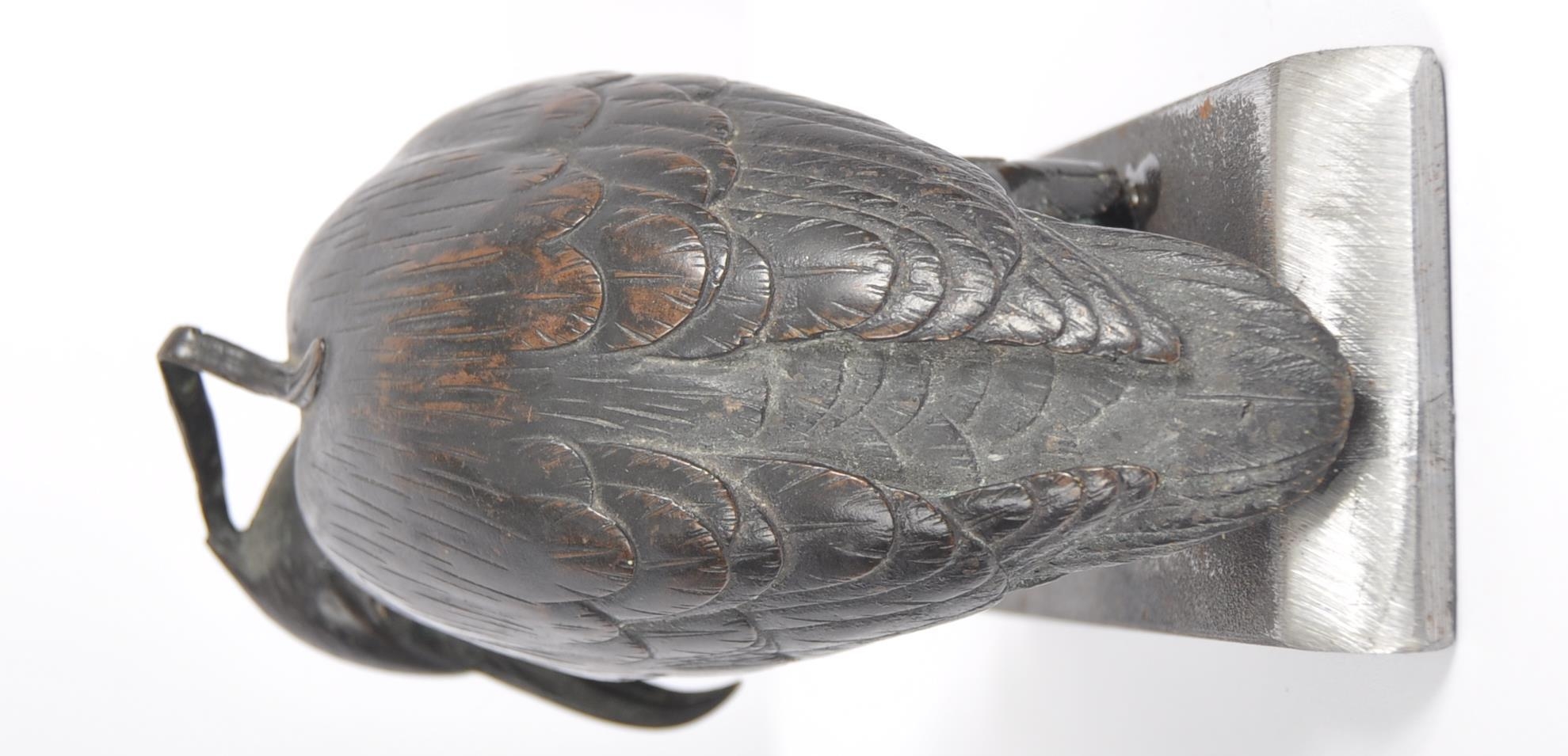 A 19th Century Japanese Meiji bronze figurine depicting a bird. The figure raised on plinth base having cast modelled features. Measures approx; 13cm tall.
