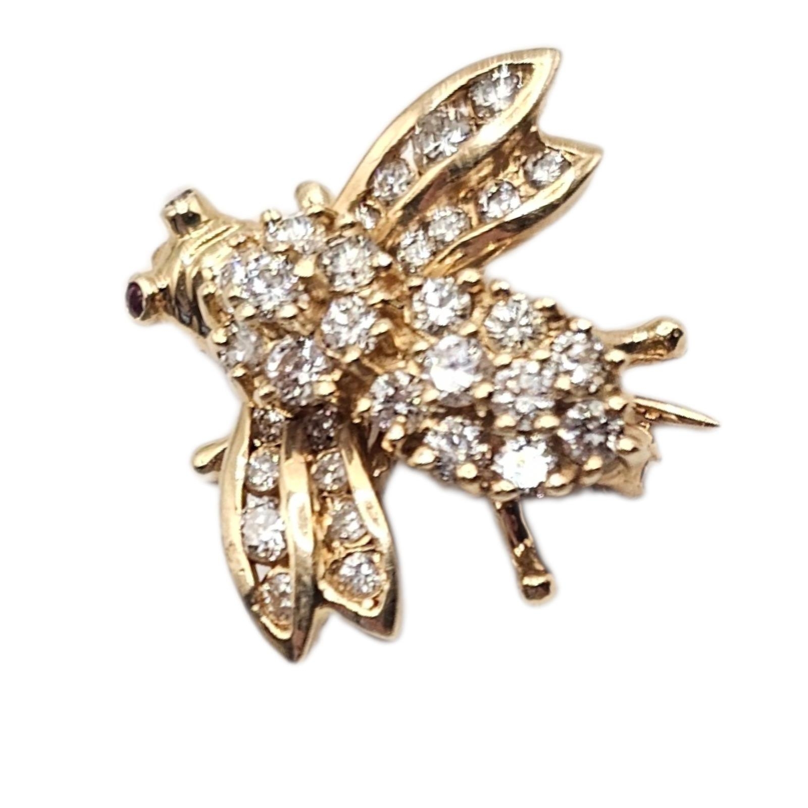 A VINTAGE YELLOW METAL AND DIAMOND INSECT BROOCH
