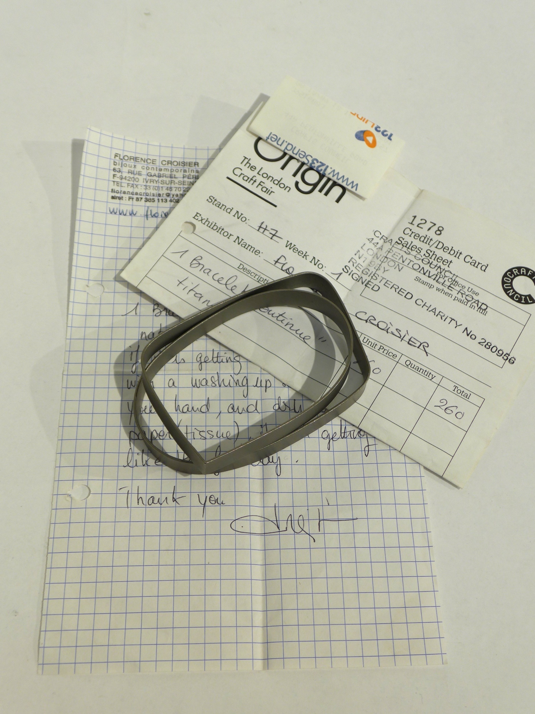 FLORENCE CROISIER (French Contemporary Jewellery artist) A Titanium bracelet - 'Continue', of contemporary form. Total 9cm x 5.5cm