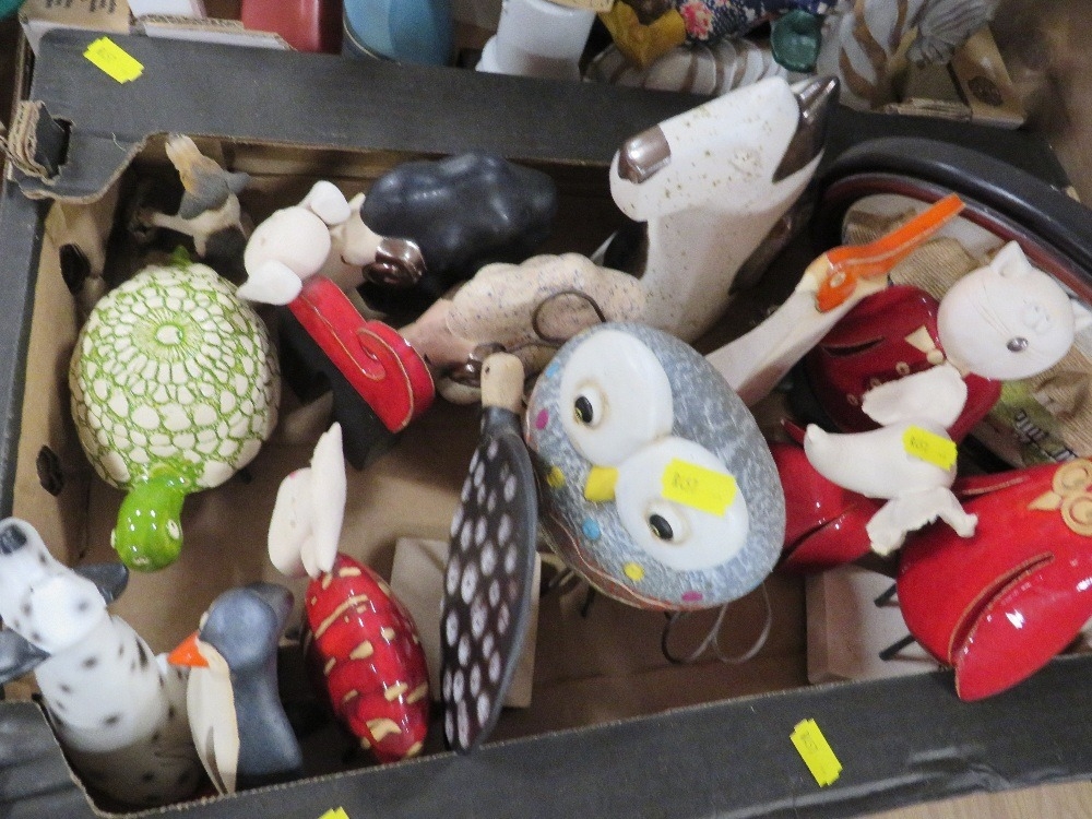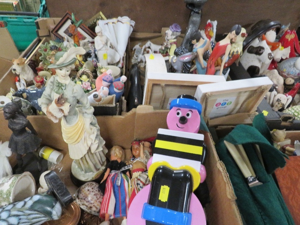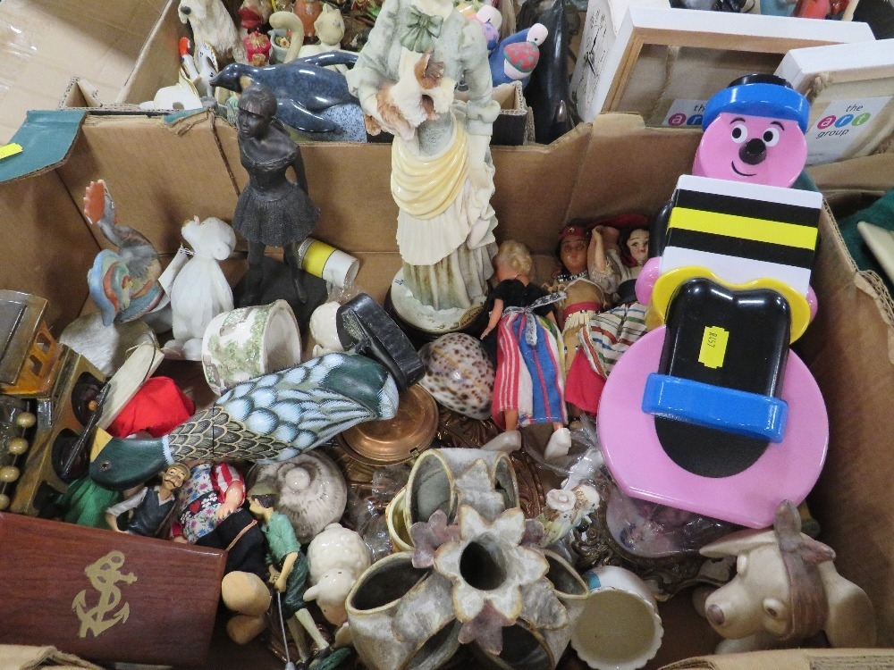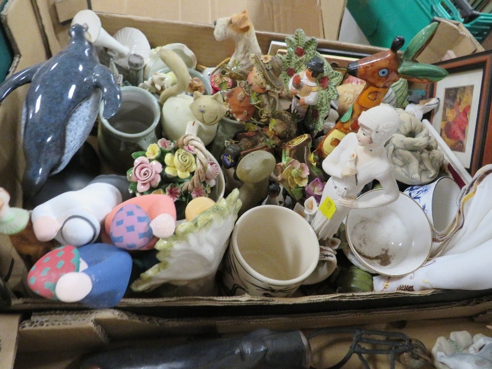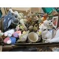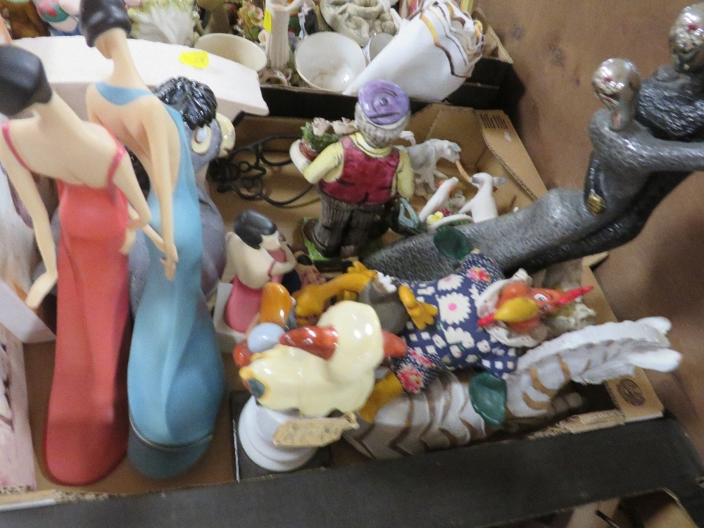 Four trays of assorted figures and ceramics etc