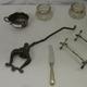 White Metal Cup Shaped Salt with impressed mark to base, 2 Silver Topped Salts, 2 Silver Knife Rests & White Metal Handled Butter Knife (8)