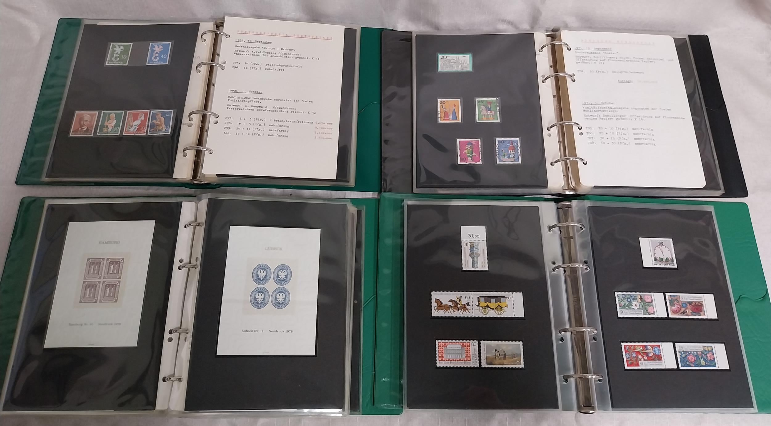 Four albums of German Bundespost stamps: 1957 - 1962, 1970 - 1974, 1978 - 1980 & 1981 - 1987.