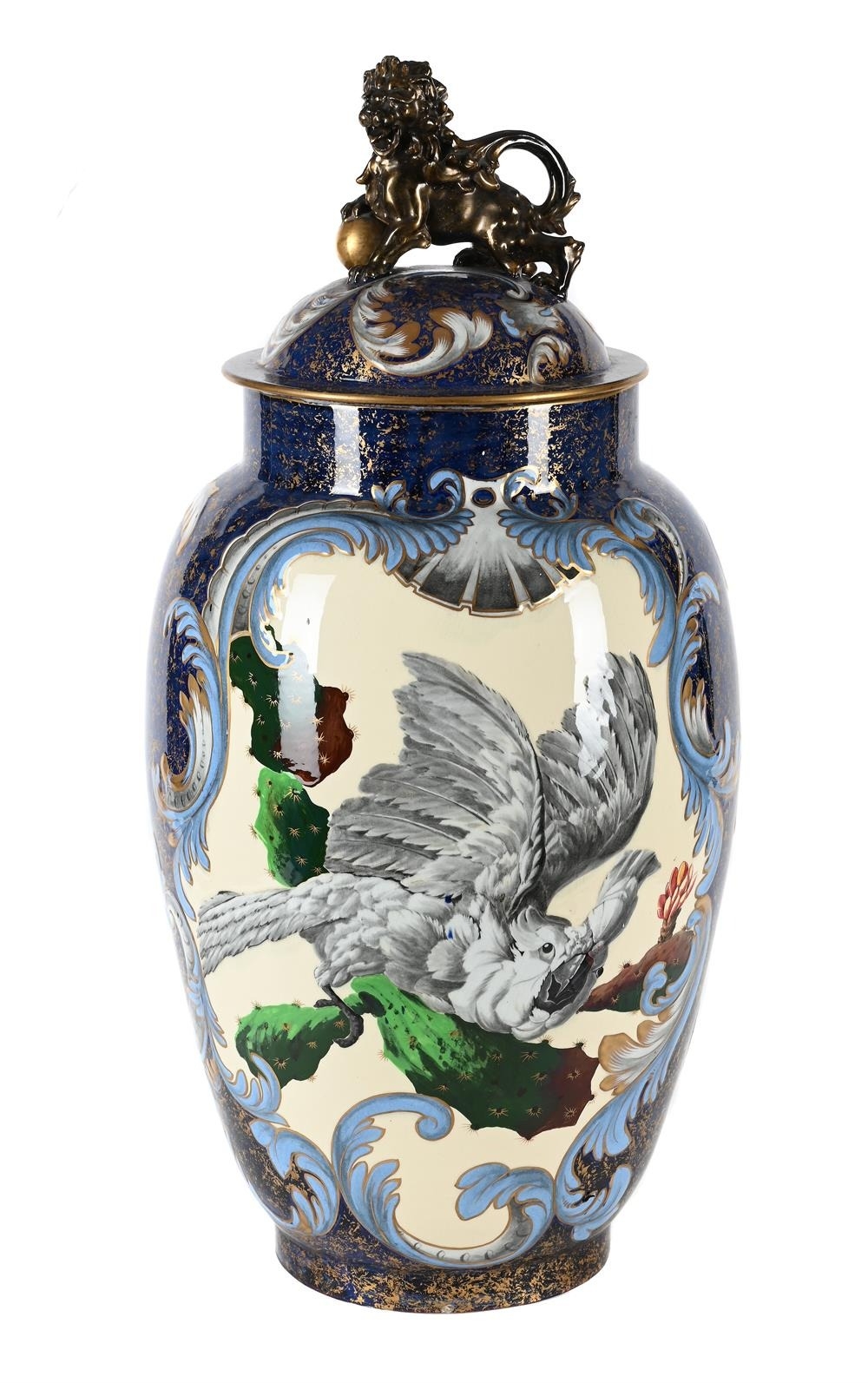 A CONTINENTAL VASE AND COVERCIRCA 1900Decorated with a cockatoo73cm high, 33 diameter