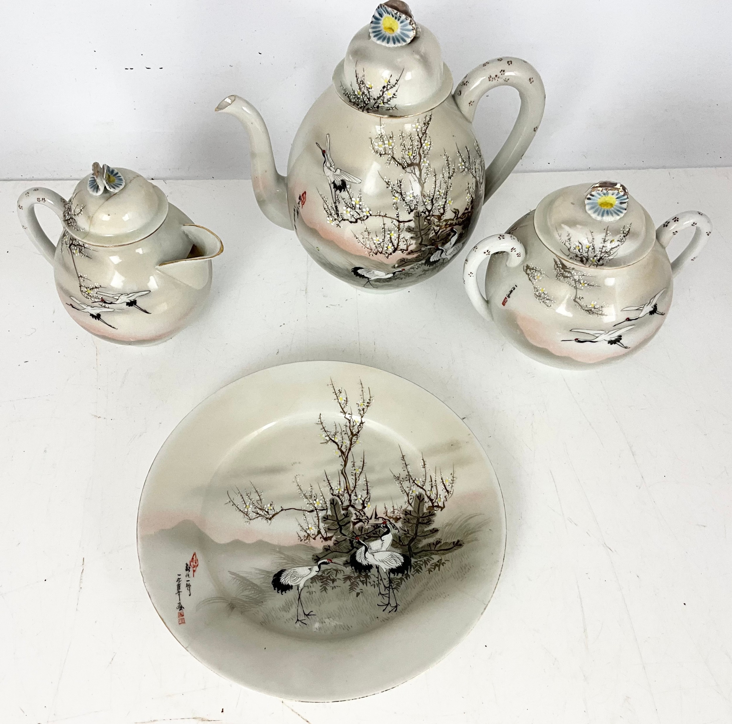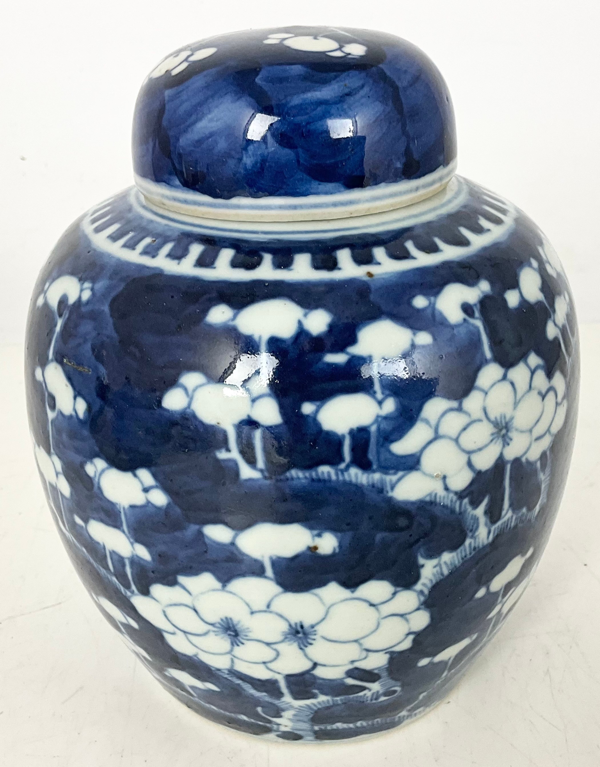 ORIENTAL PRUNUS BLUE & WHITE GINGER JAR AND COVER 15cm WITH ORIENTAL FINE PORCELAIN TEAWARE