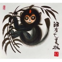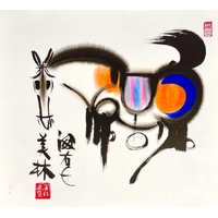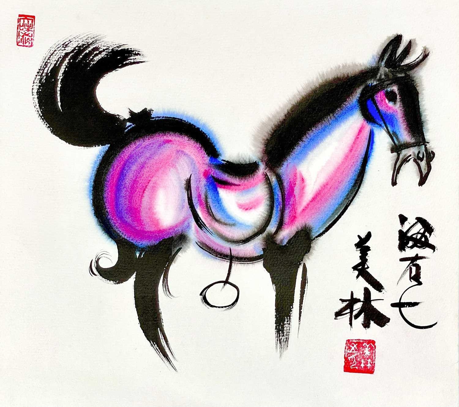 A Chinese watercolour of a stylised horse, 'After' Han Meilin. Signed, 36 x 39.5cm.