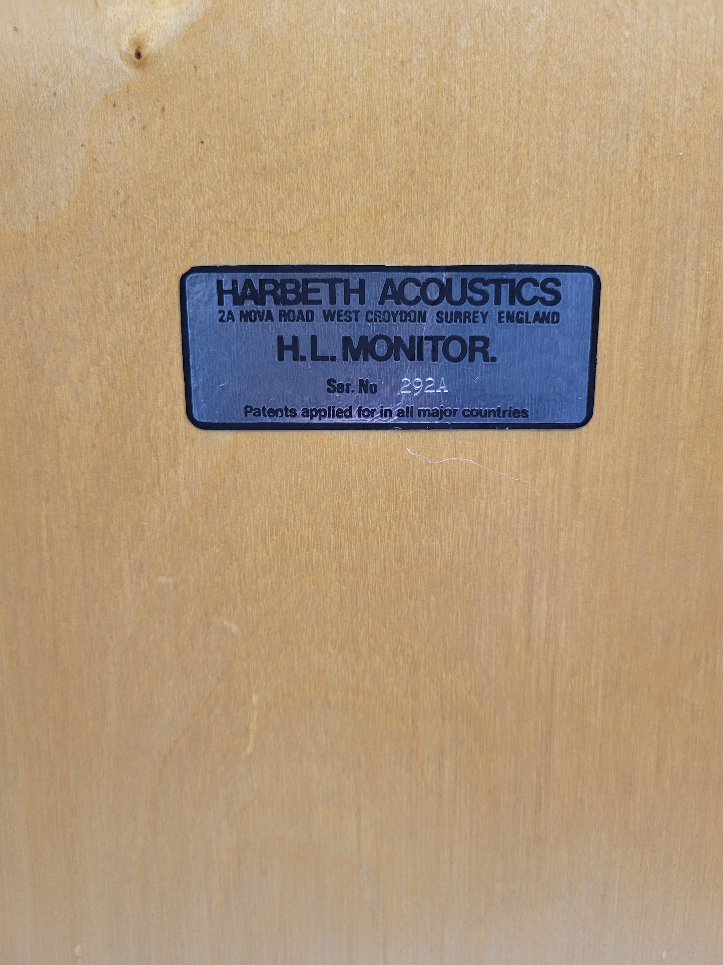 Harbeth Acoustics H.L Monitor Speakers Mk1 Early Serial Numbers 292a / 292b