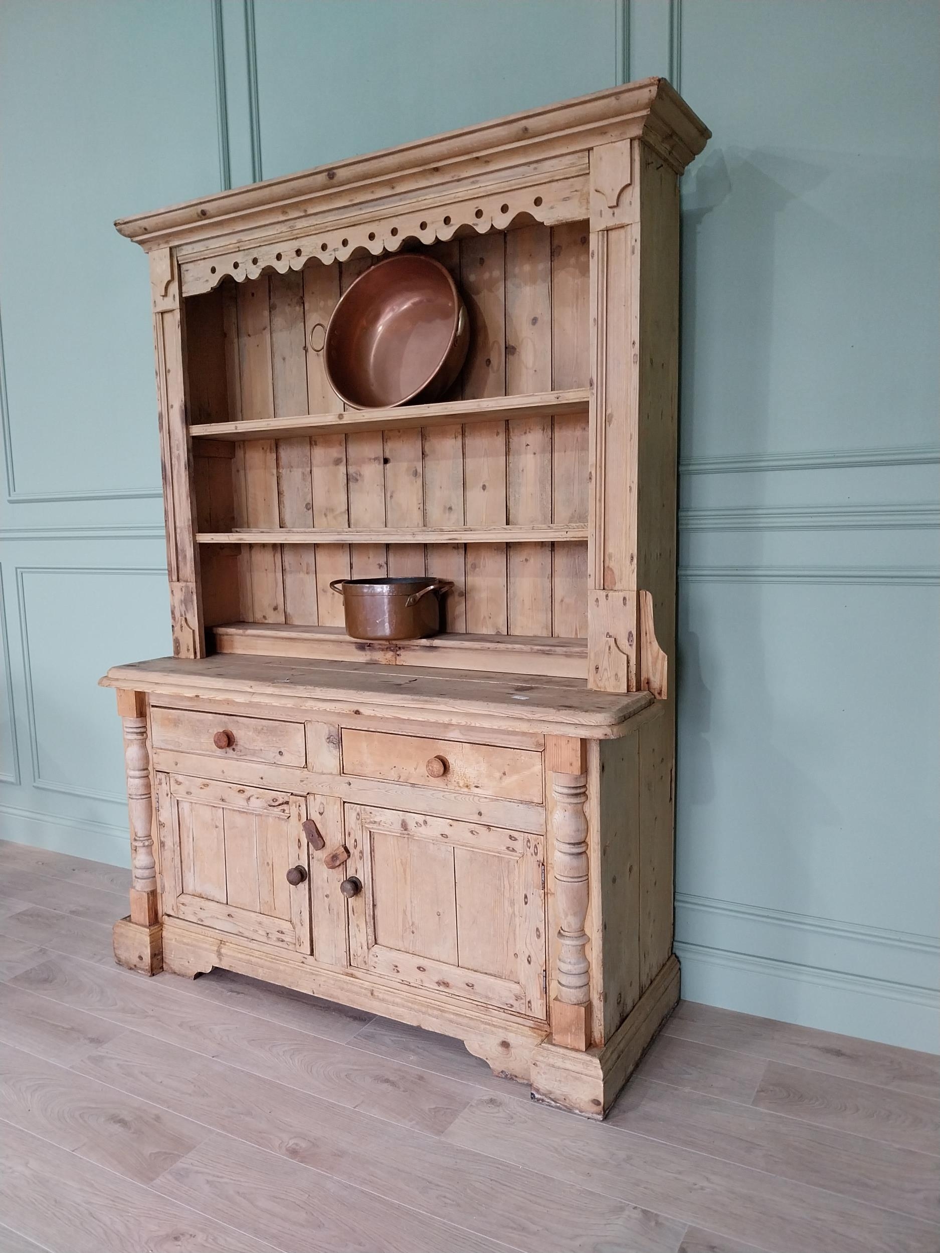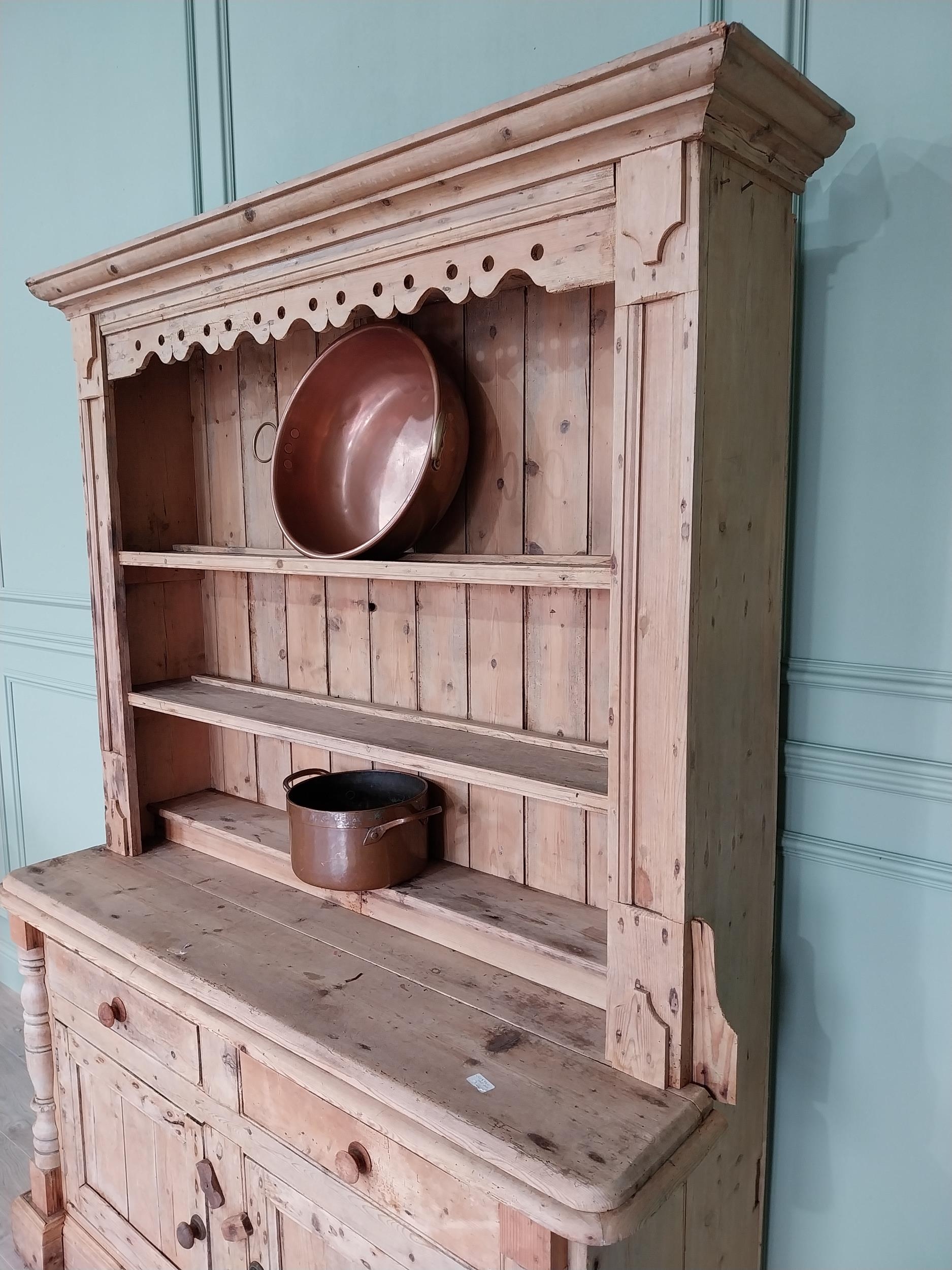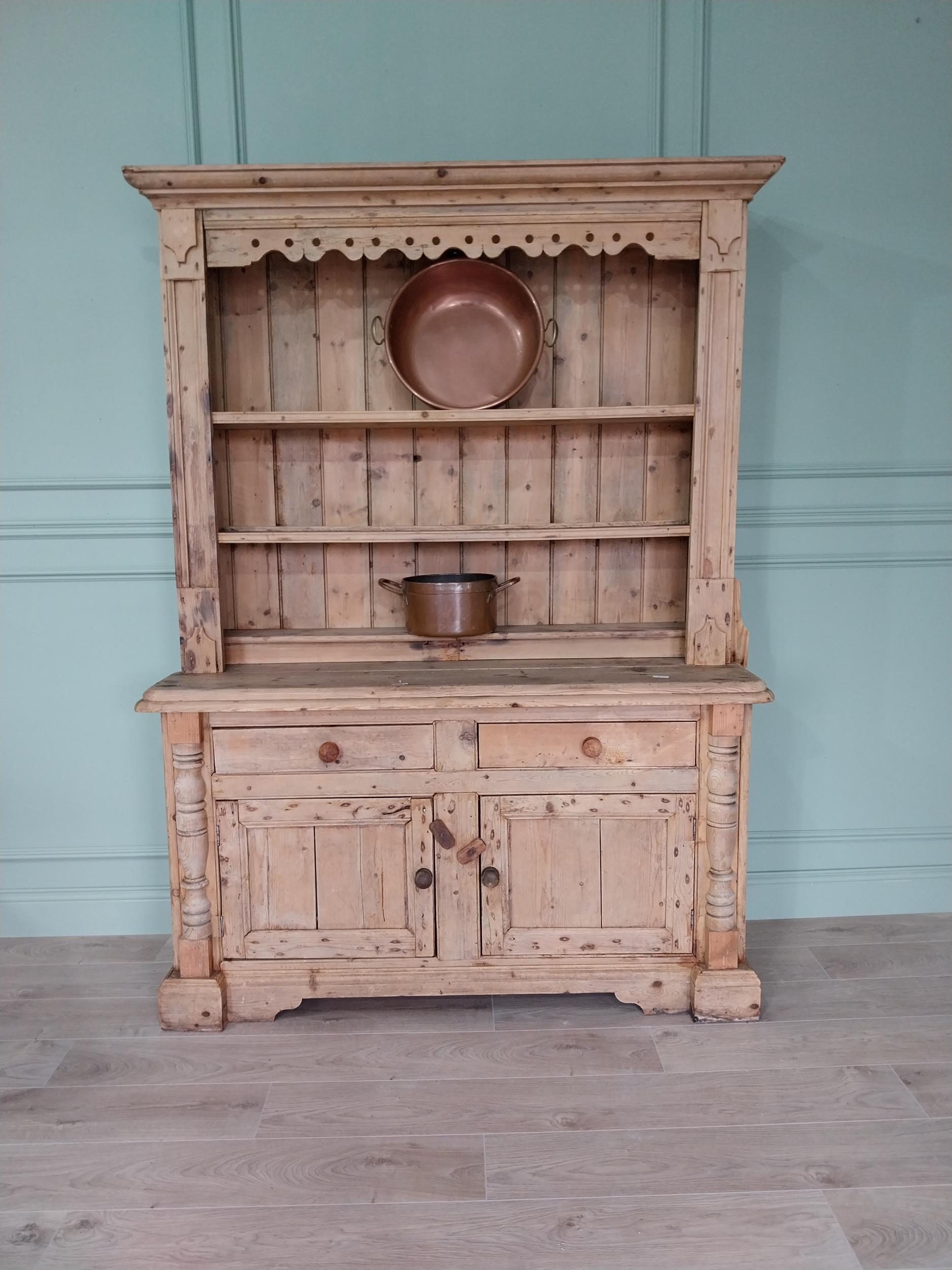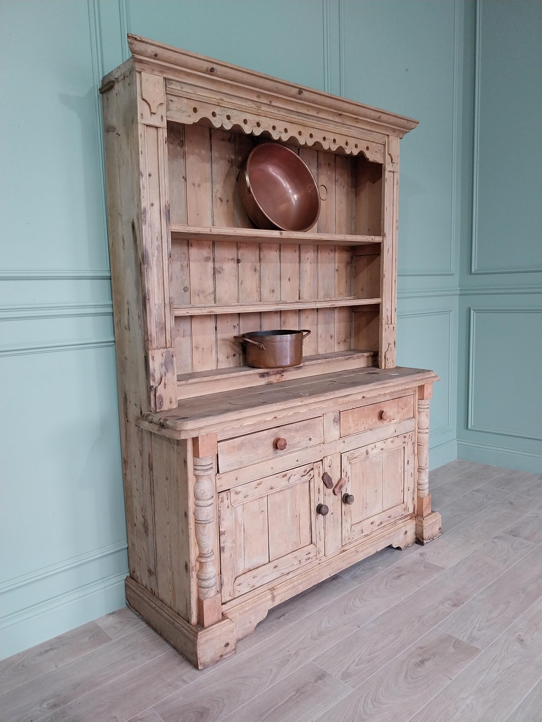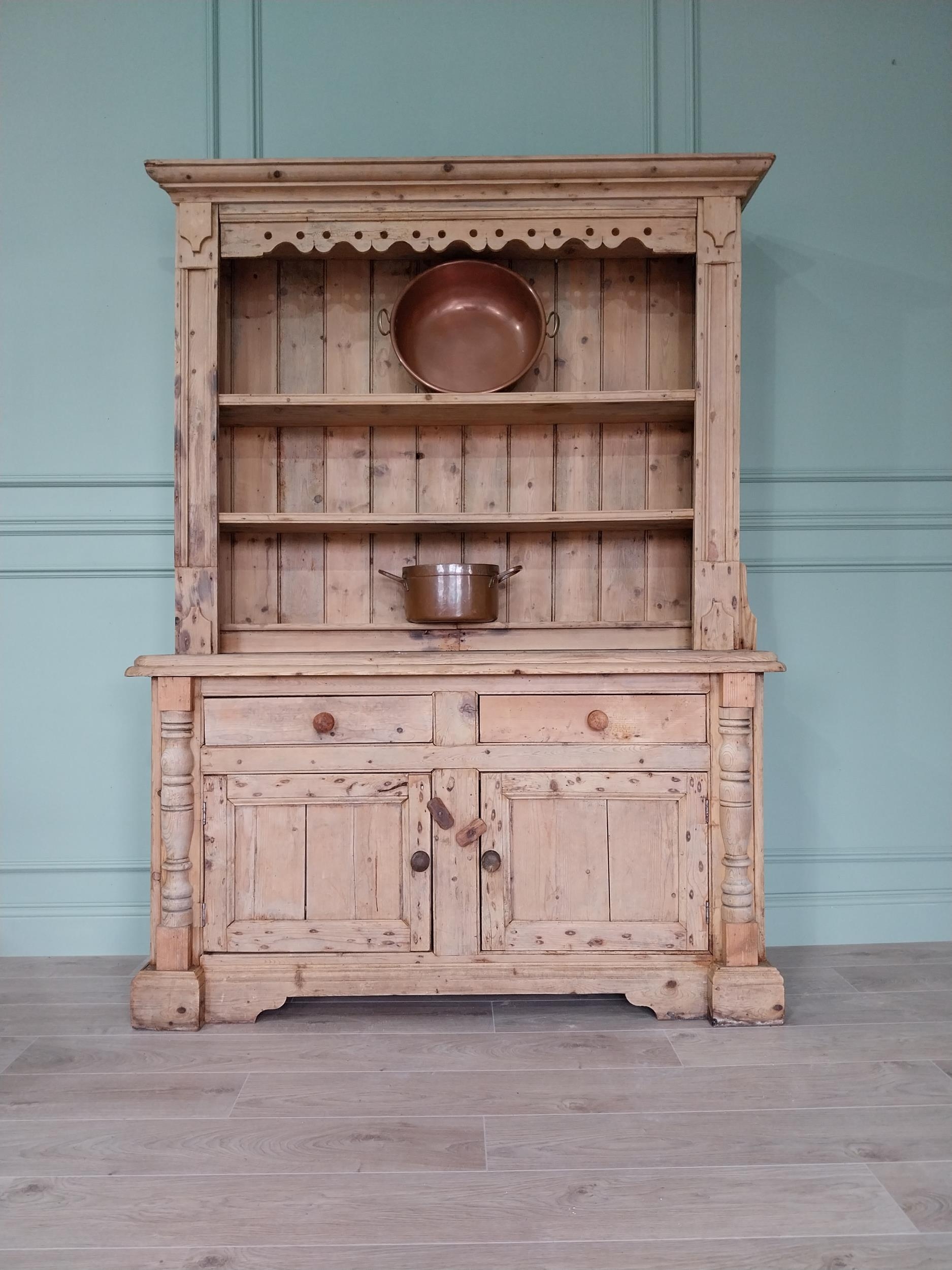 19th C. Irish pine dresser, the superstructure with two shel...