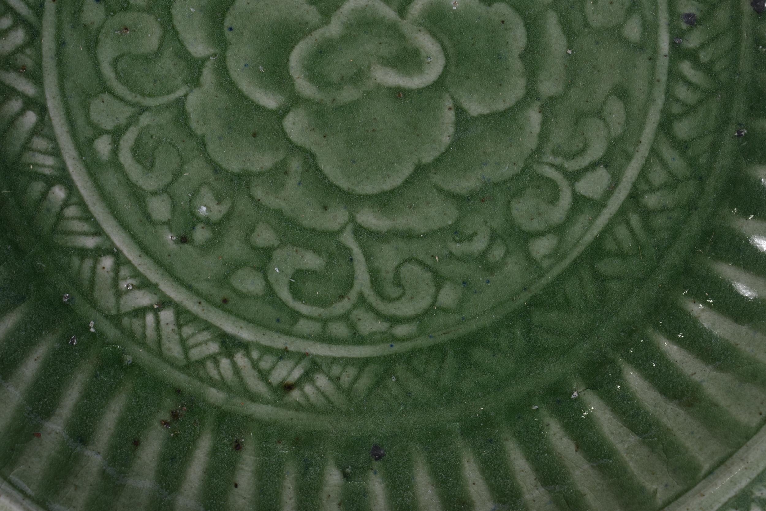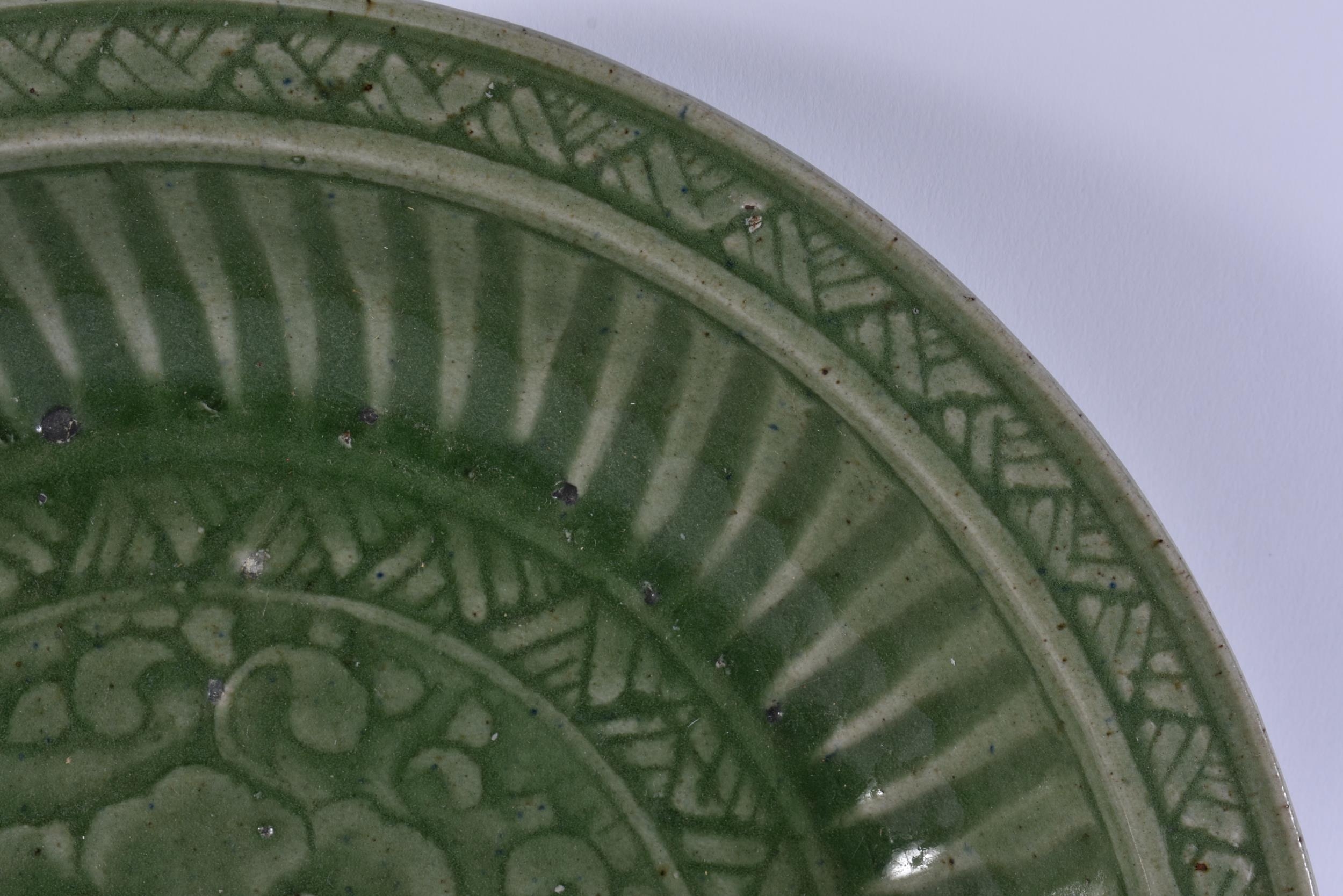 A 17TH/18TH CENTURY CHINESE LONGQUAN CELADON DISH. 30 cm wid...