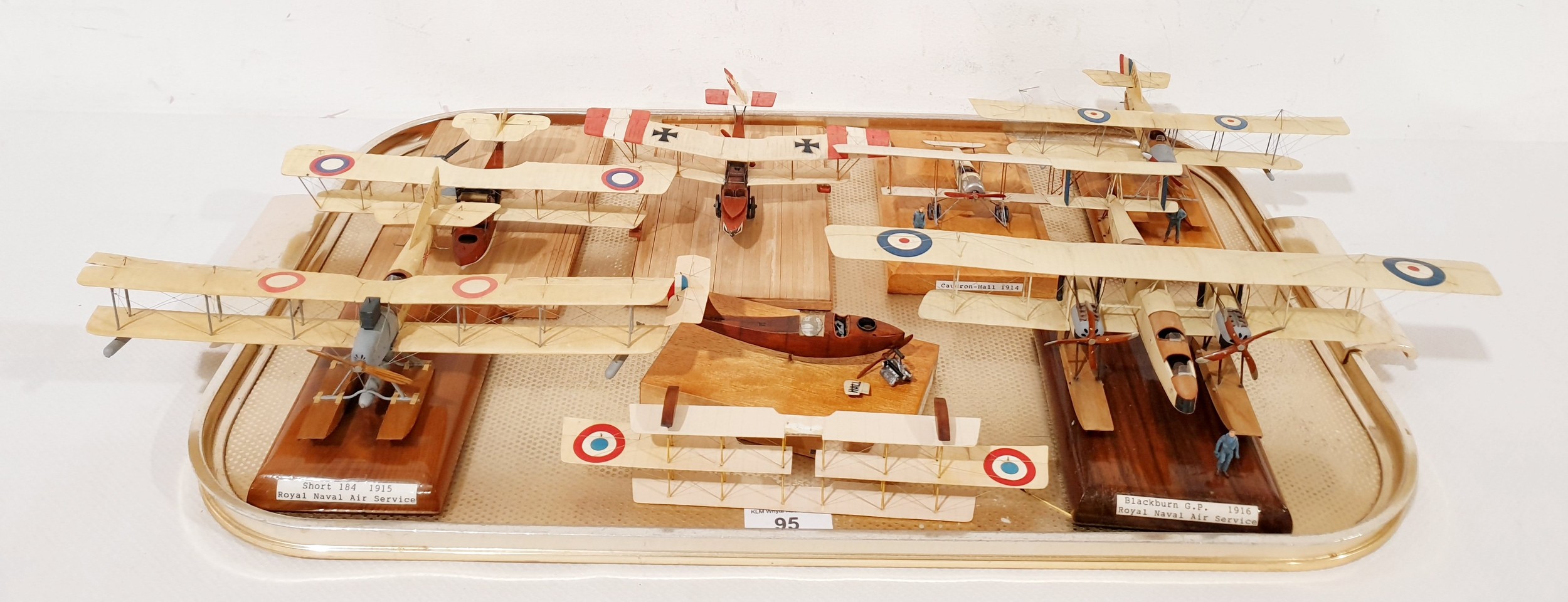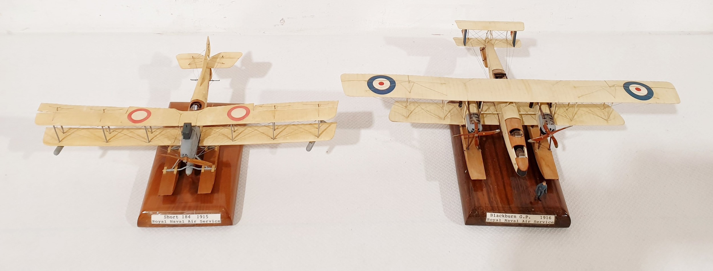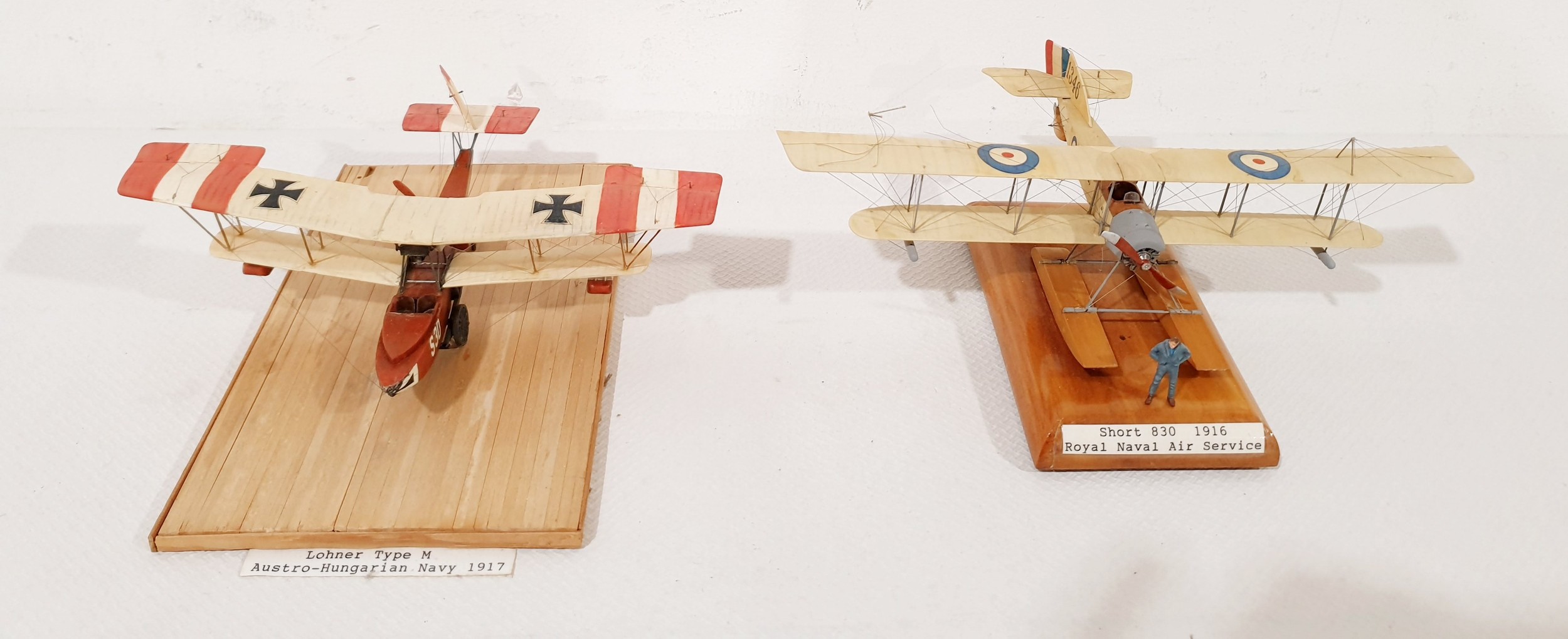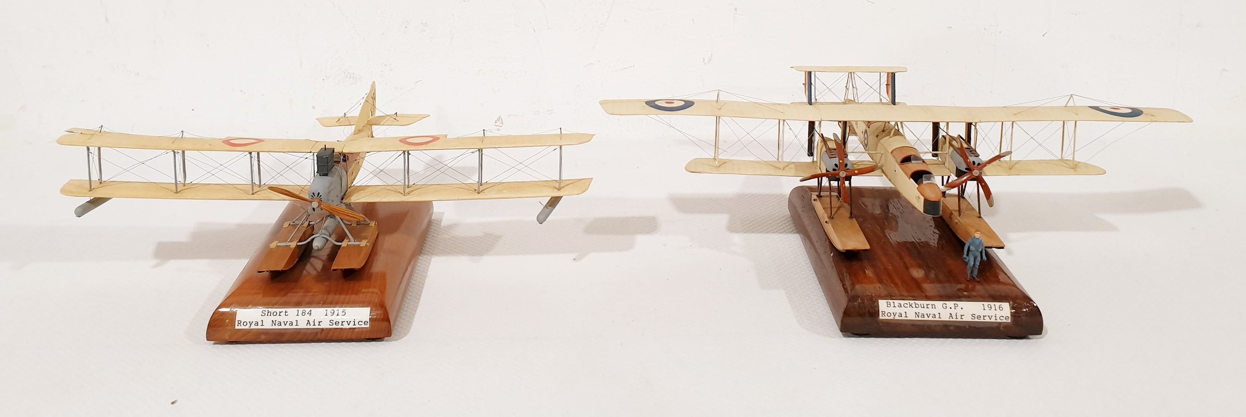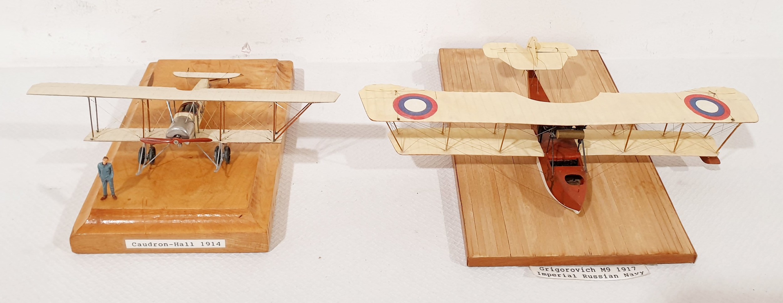 Seven scale model bi-planes 'Blackburn G.P., 1916', 'Short 184 1915', 'Lohner Type M, 1917', 'Short 830, 1916', Cauldron-Hall, 1914' 'Levy Besson 220' a/f & 'Grigorovich M9 1917' a/f. Please arrange collection or your own packer and shipper.