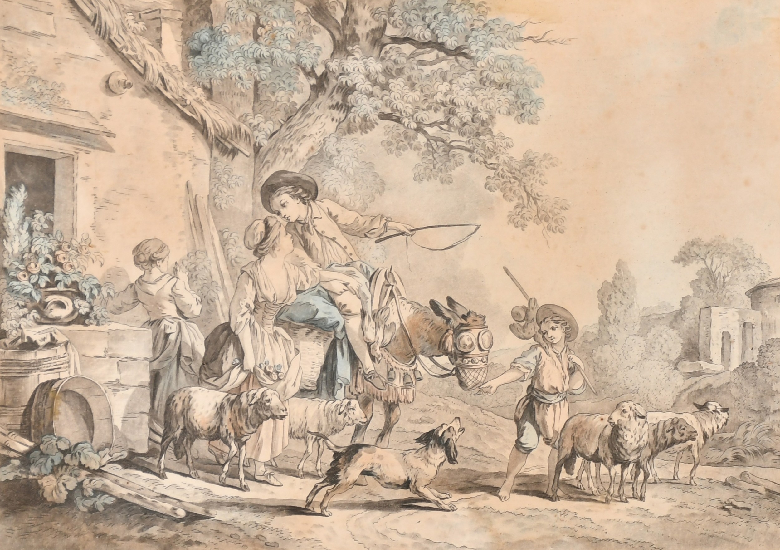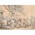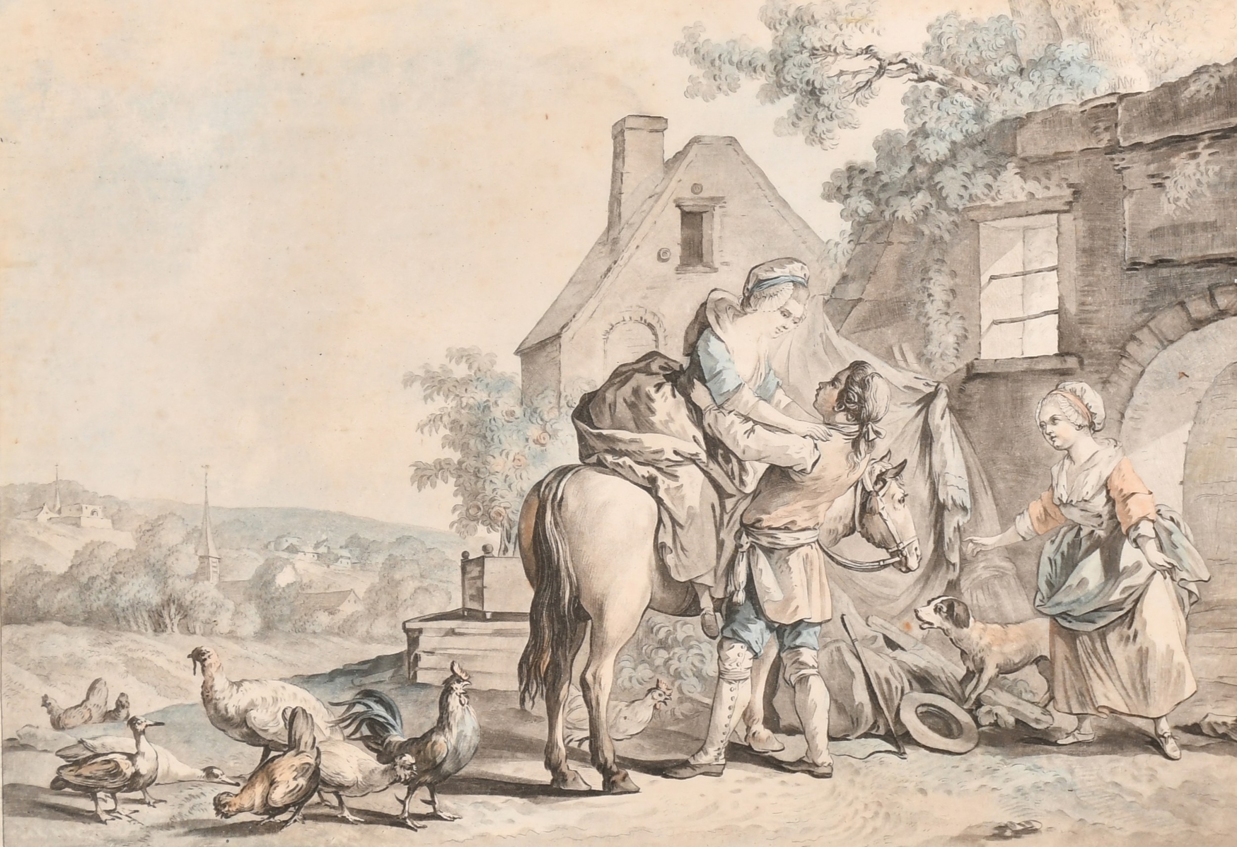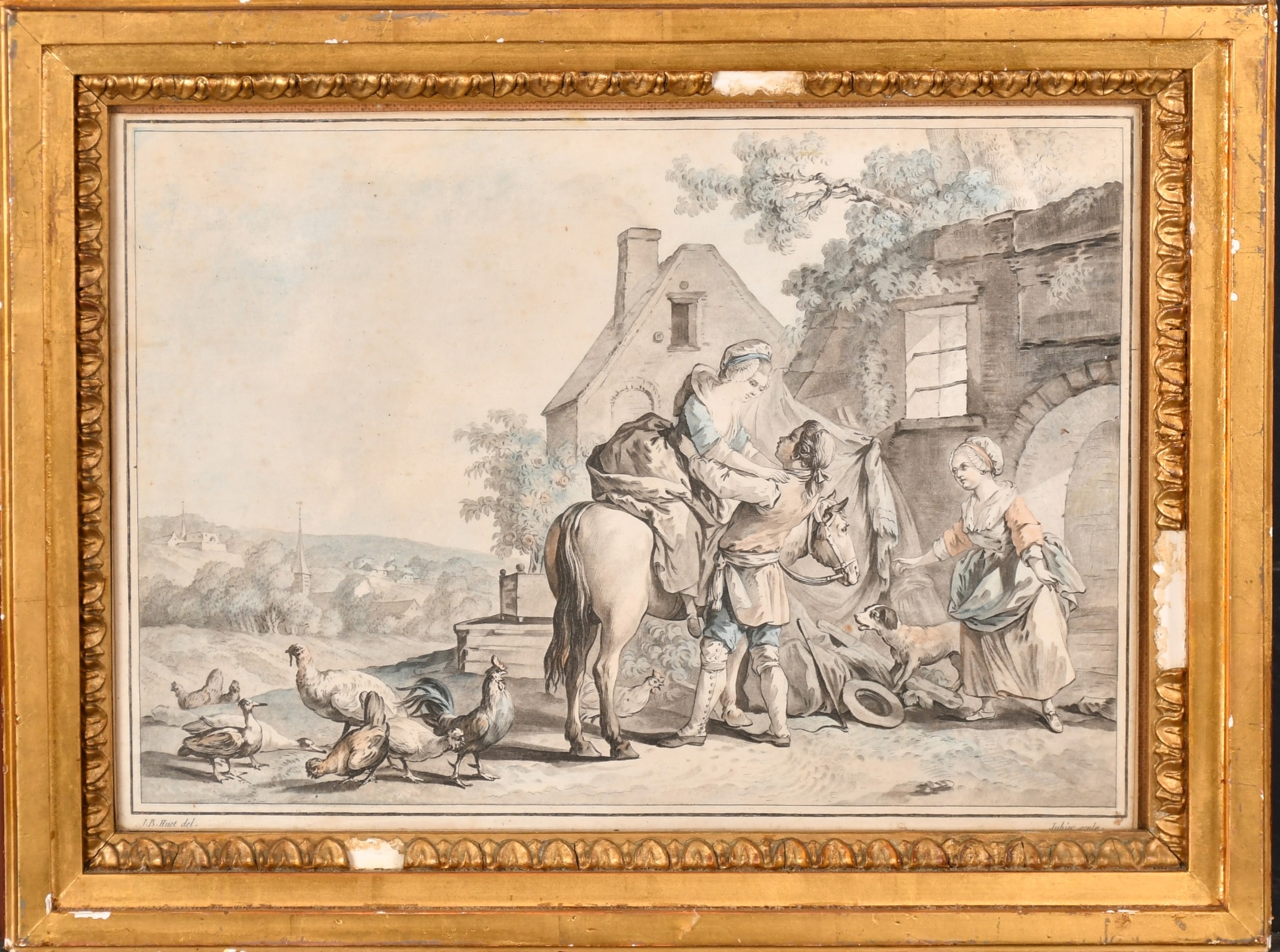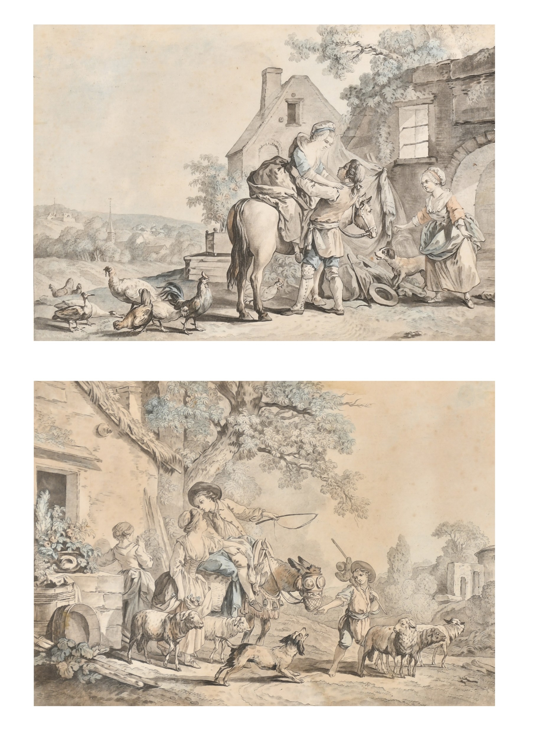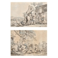 After Jean-Baptiste Huet (1745-1811) French. "L'arrivee de la Fermiere", Engraving, 8.25" x 11.5" (20.9 x 29.2cm) and a companion piece, a pair (2)