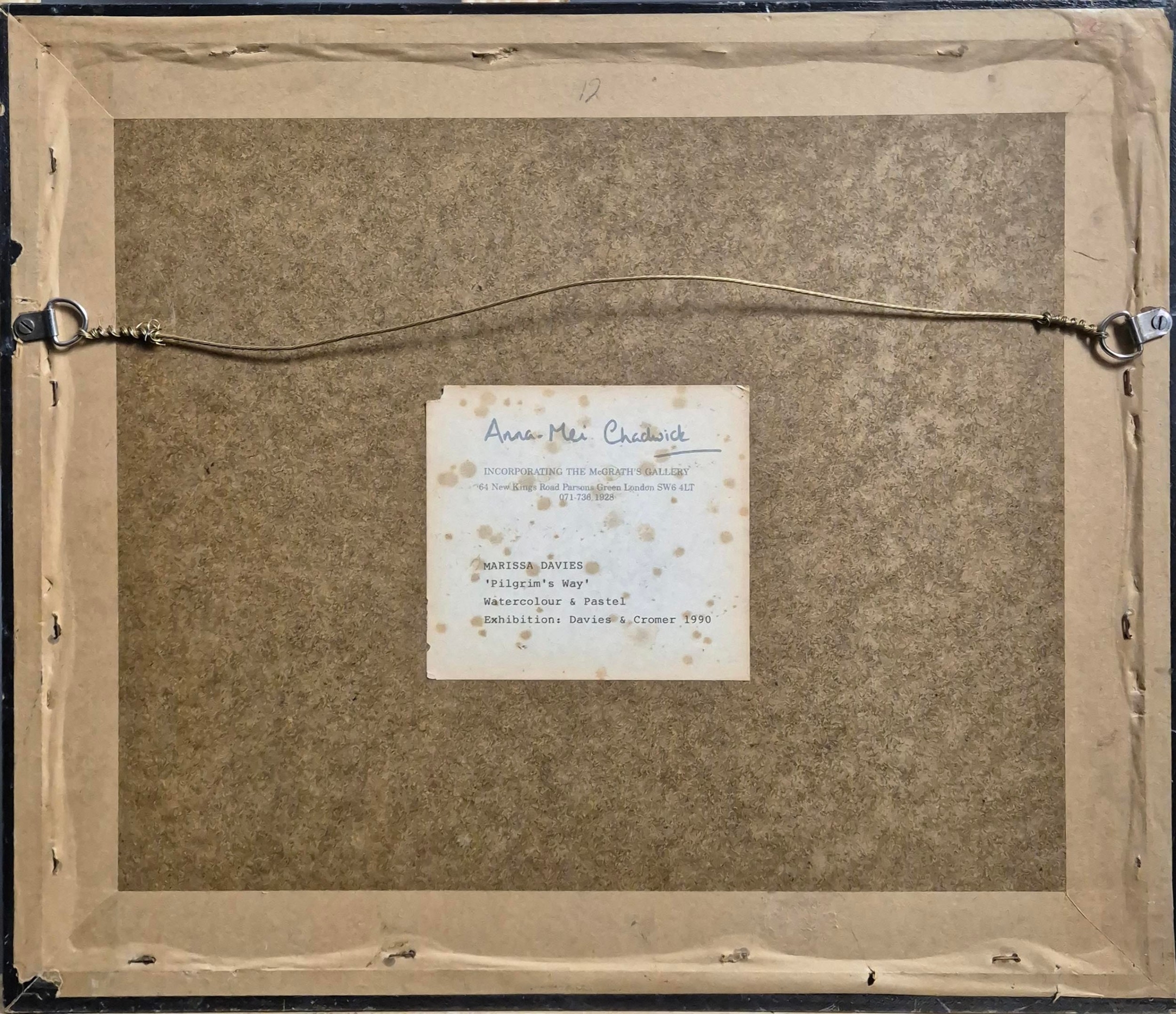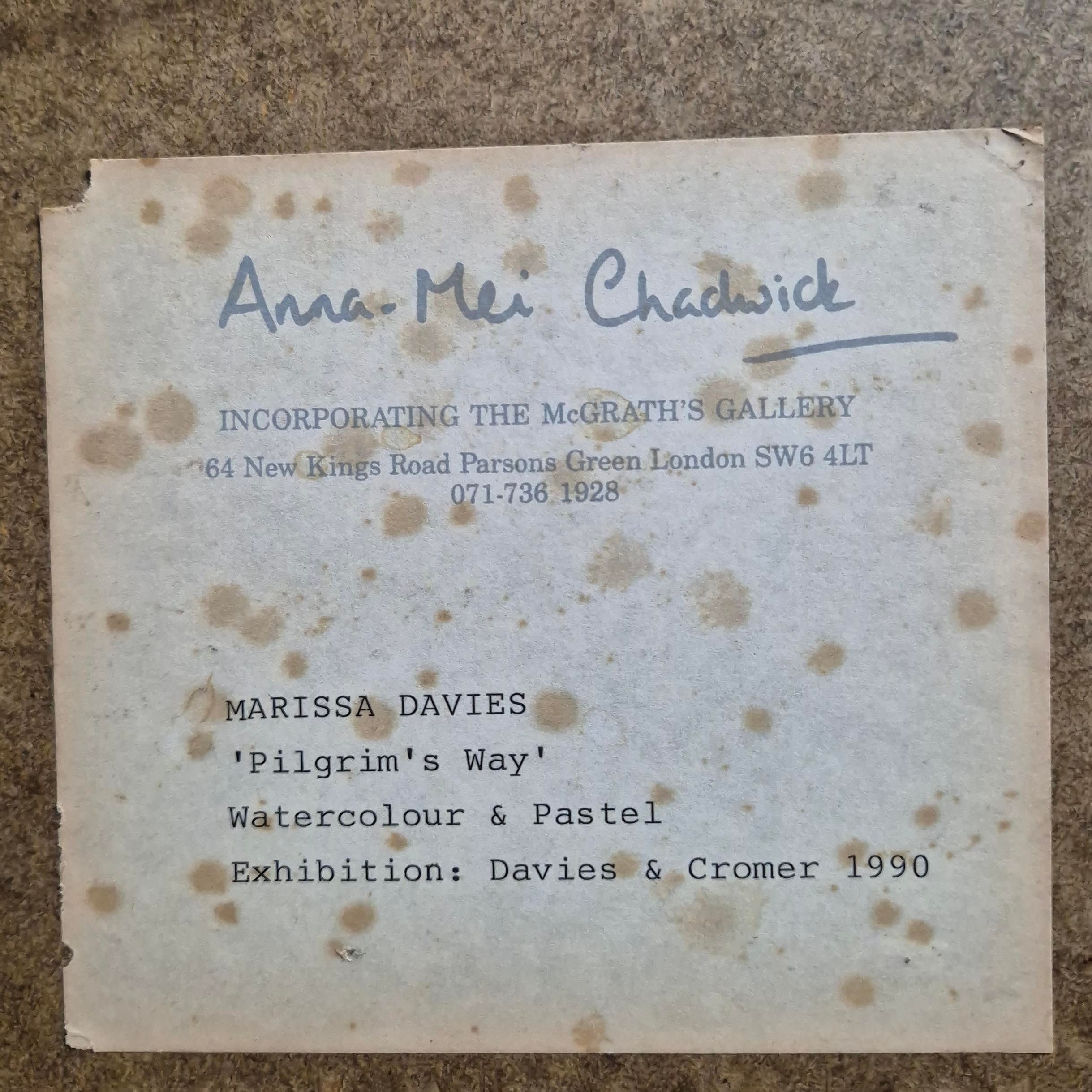 MARISSA DAVIES. PILGRIMS WAY. Watercolour & Pastel, 14cms x 19cms, signed, Framed (Label for Anna Mei Chadwick Gallery Verso).