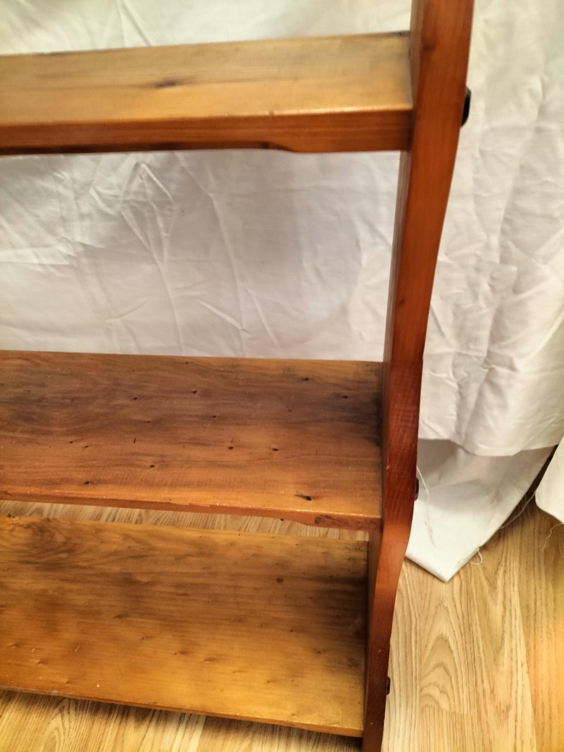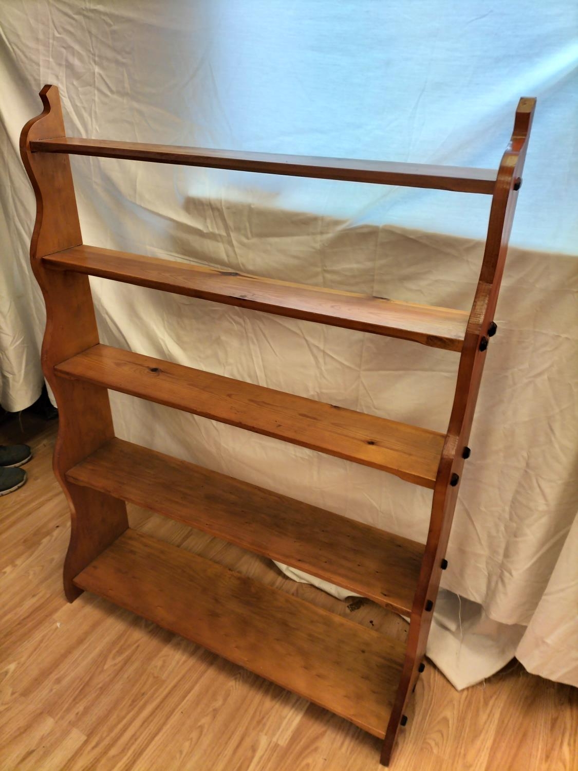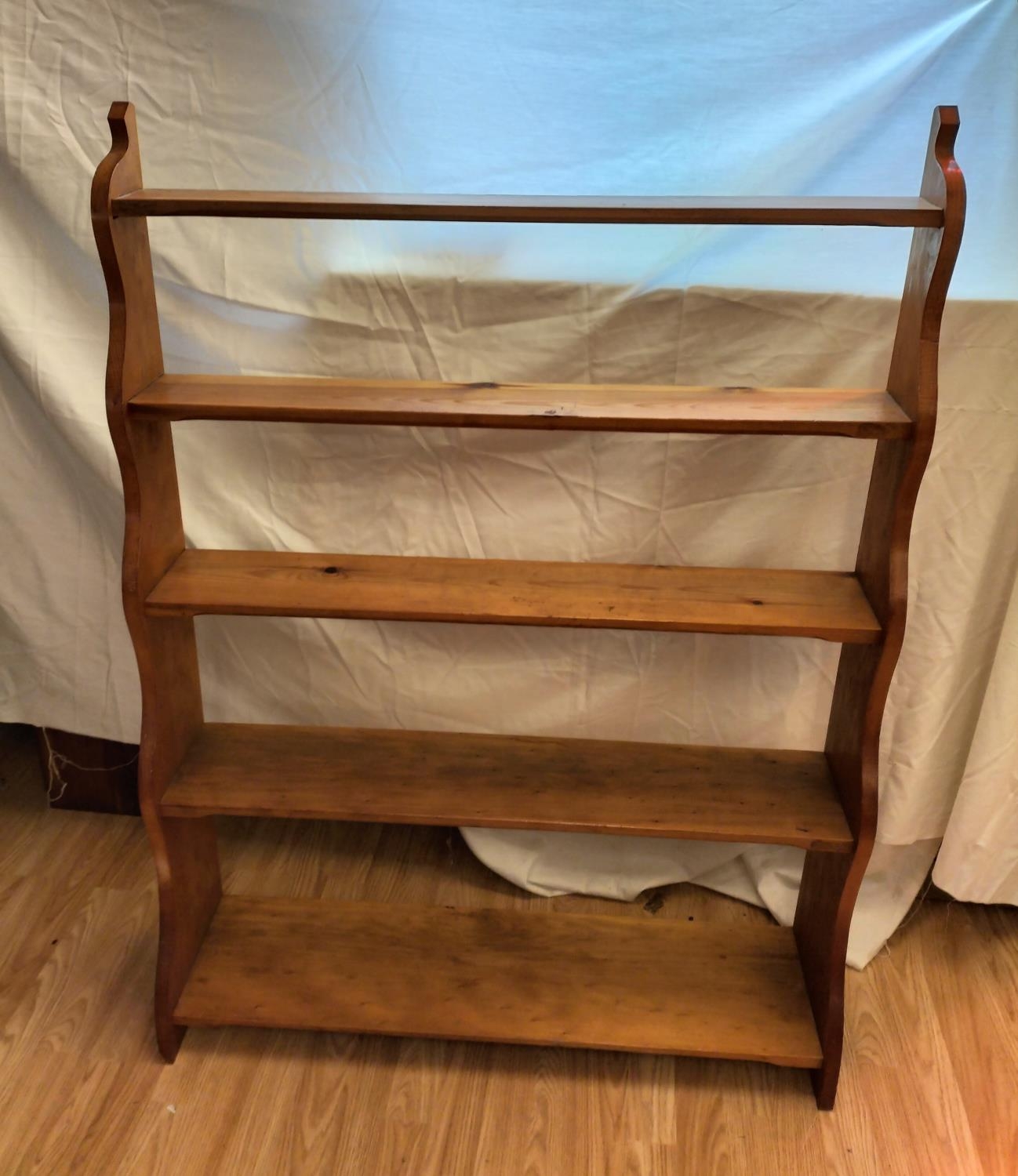 Free Standing 5 Shelf Unit with Graduated Depth Shelves. 127cm high, 94cm long, largest shelf depth 23cm. Collection Only.