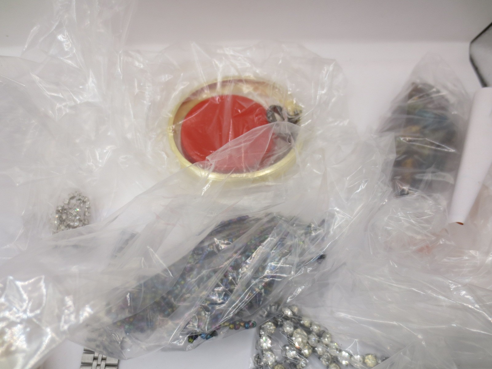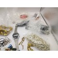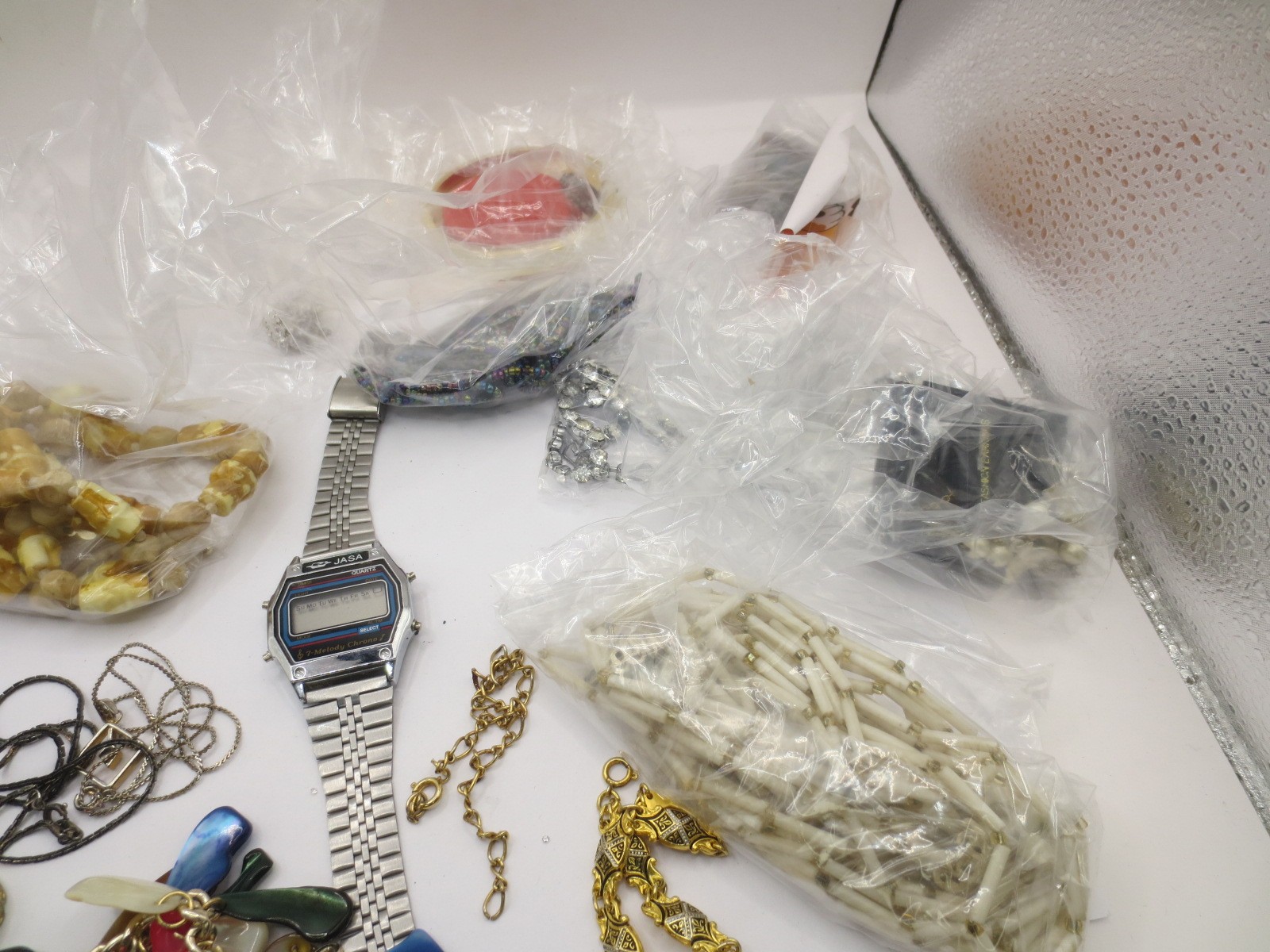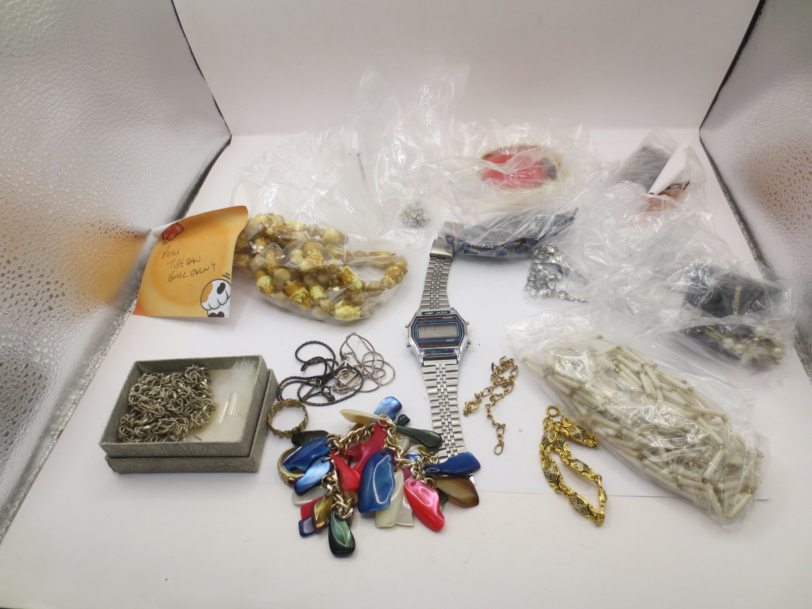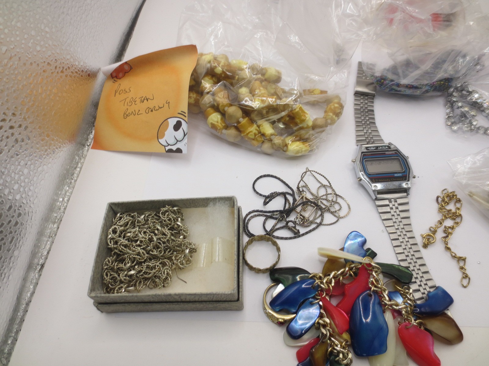 A bag of assorted costume jewellery and a JASA quartz digital wrist watch (a/f requires new battery at least)
