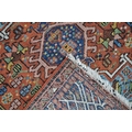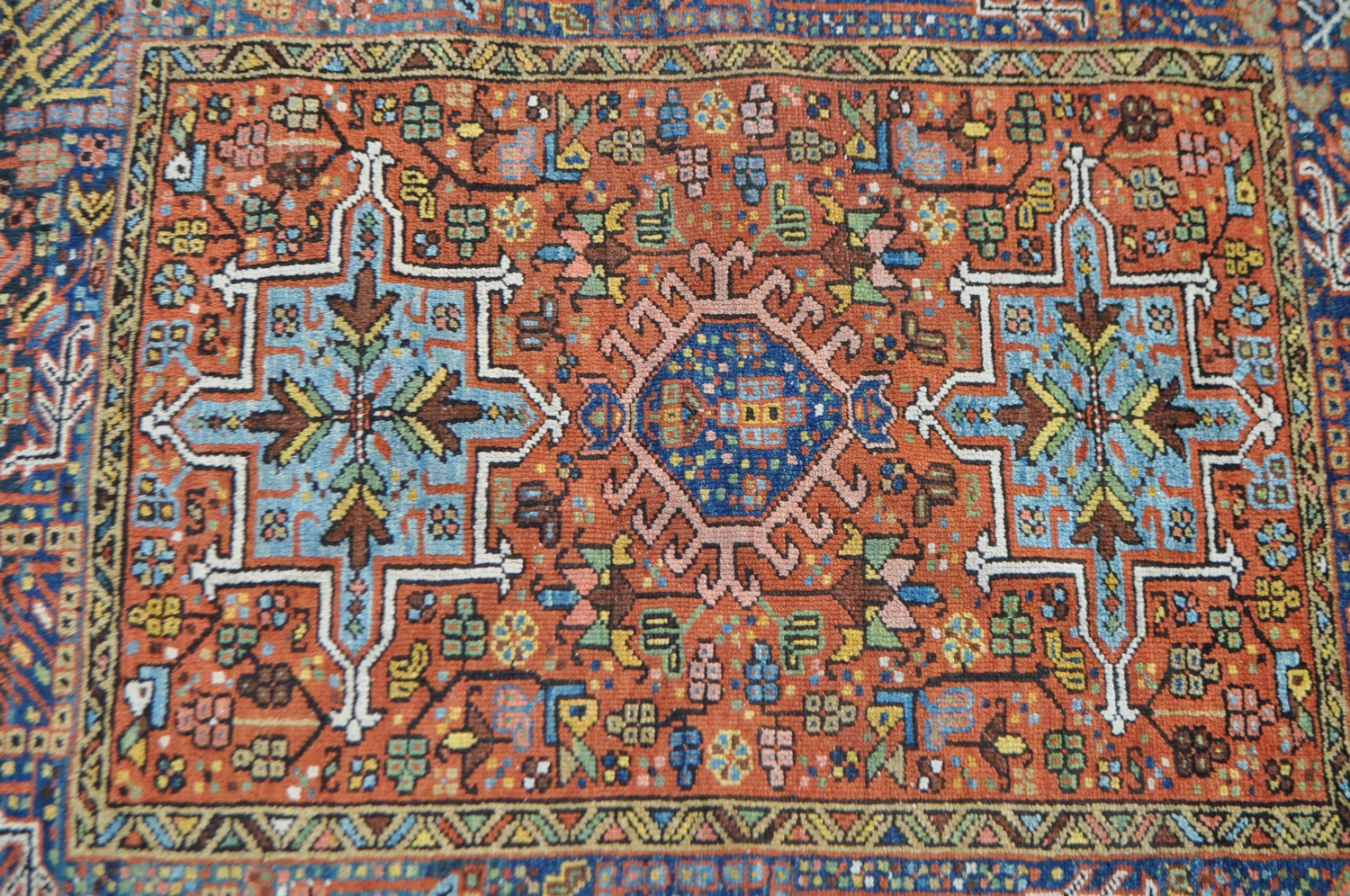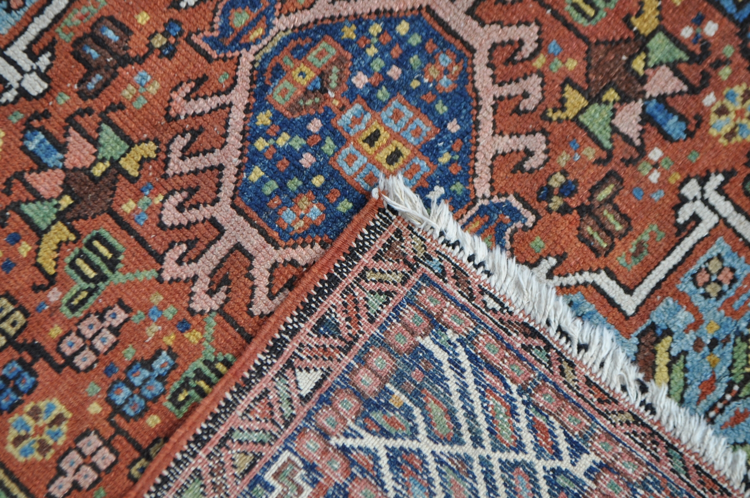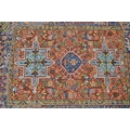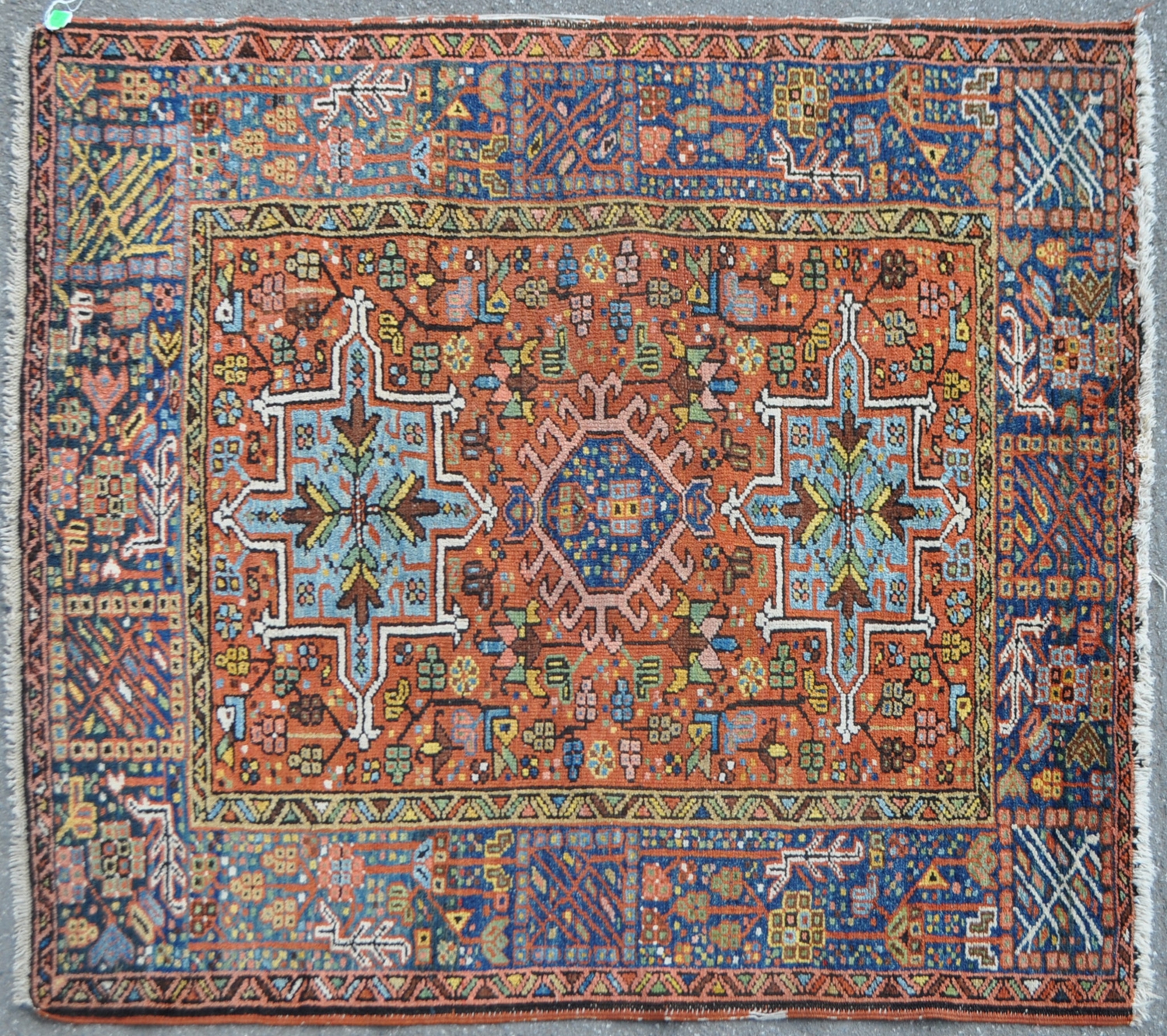 A mid 20th century Iranian Karadja rug. The rug having an orange ground with three central medallions in a variety of natural colours surrounded by cipek type motifs with border of fetters.