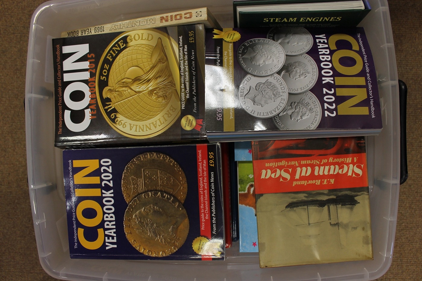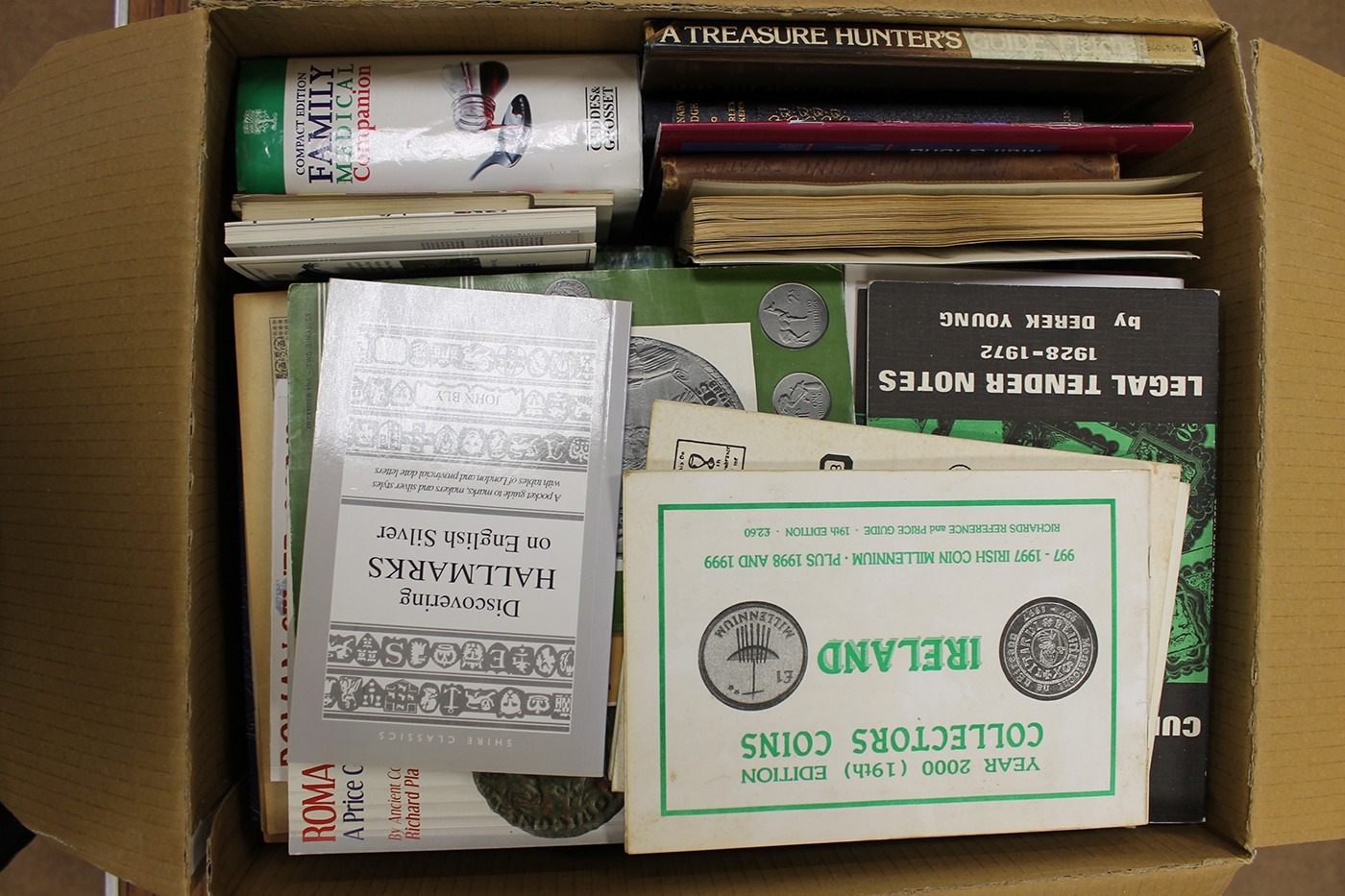 Accumulation with cigarette cards, marbles, DVDs, videos, Playing cards, books, reference works, Coin Monthly books, etc, heavy, collection recommended. (27B)