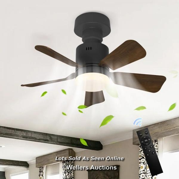 RRP: 31.99 - 17 STORIES SILVYA 45CM 5 - BLADE E27 SOCKET CEILING FAN WITH LED LIGHT AND REMOTE / BLADE FINISH: BLACK / SEE IMAGES / BOX NOT FULLY CHECKED / A25