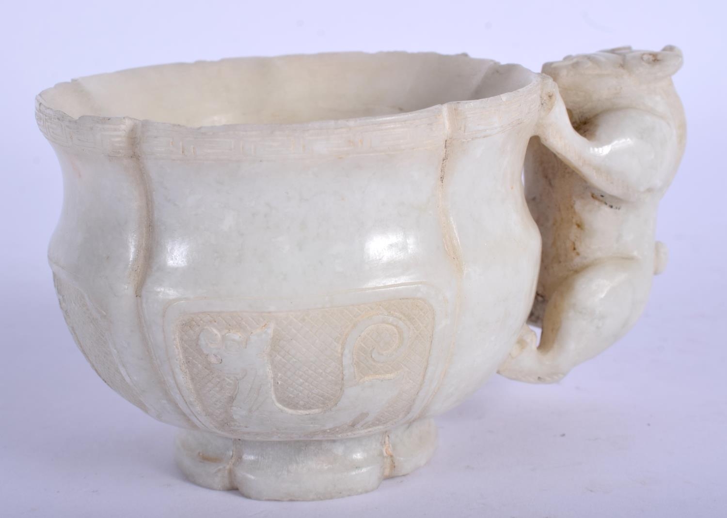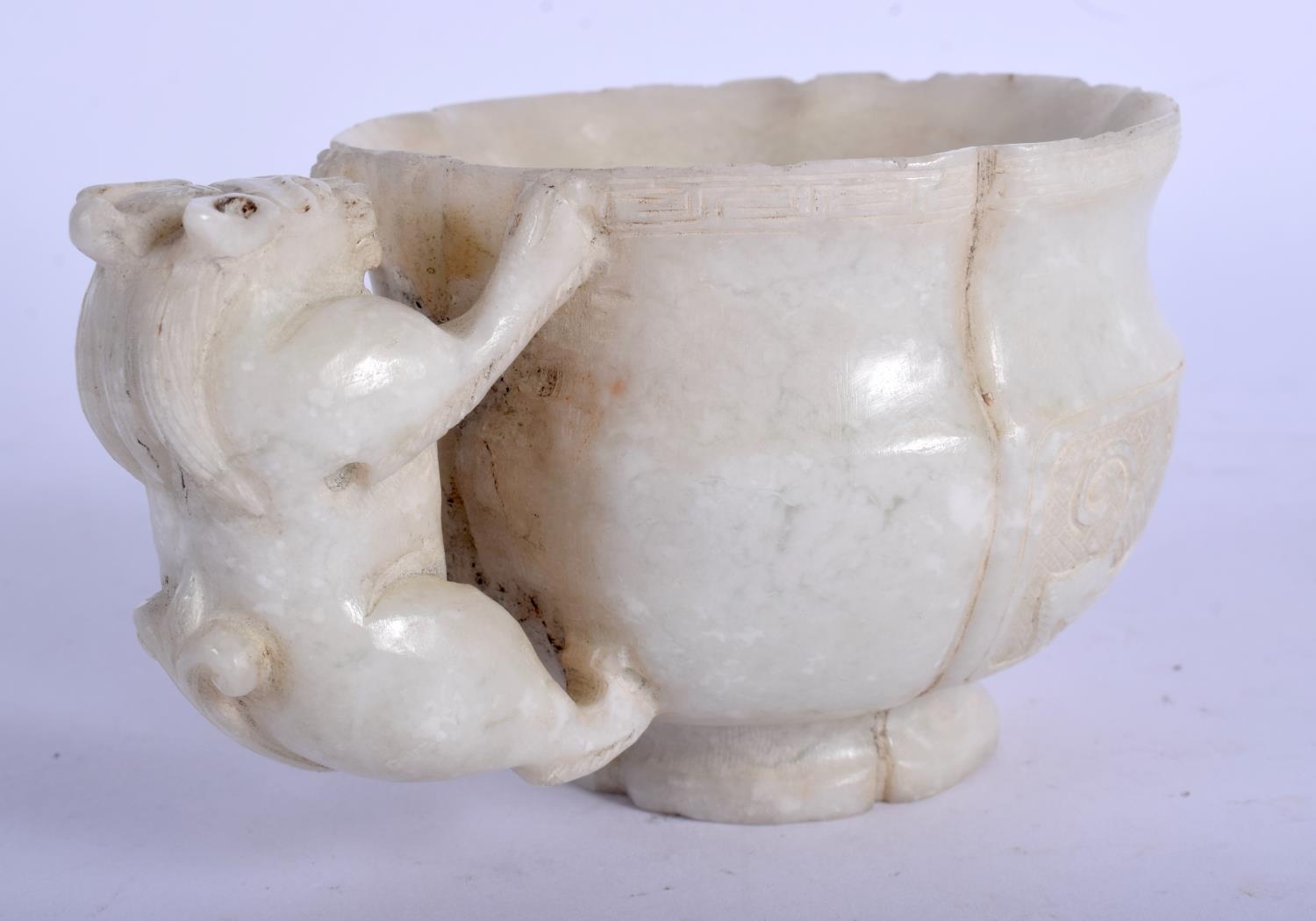 A 19TH CENTURY CHINESE CARVED HARDSTONE LIBATION CUP Qing, of lobed form, sung style. 9.5 cm wide.