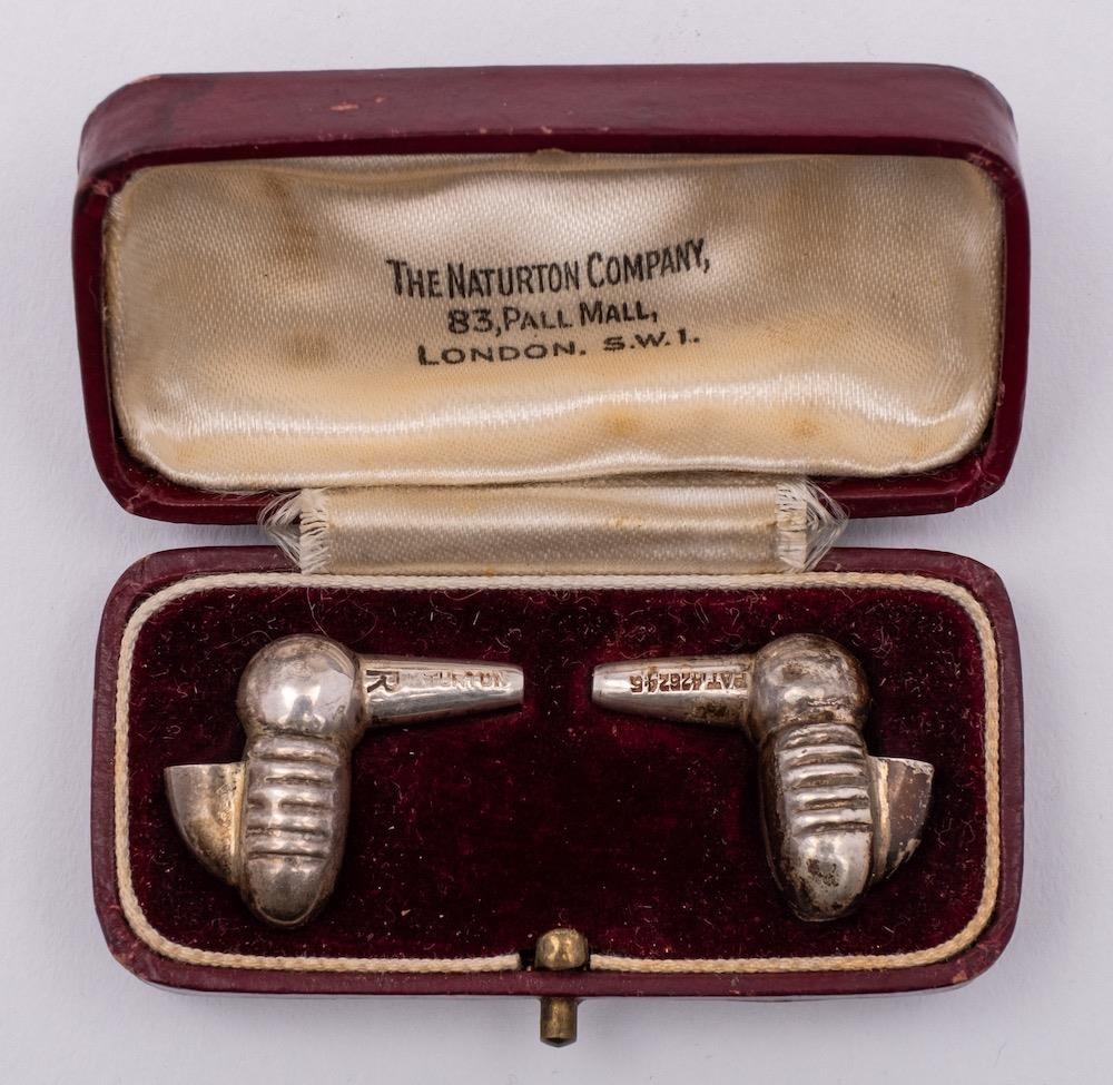 A pair of Brune-Sedeyn silver hearing aids by the Naturton Company , London - 1935-1936: 6gms, 0.20ozs.