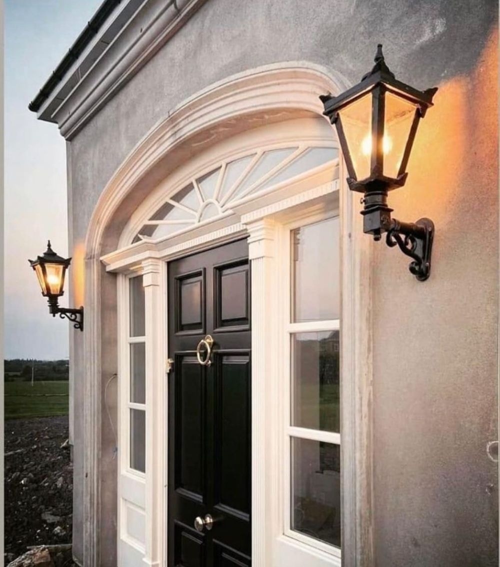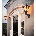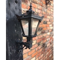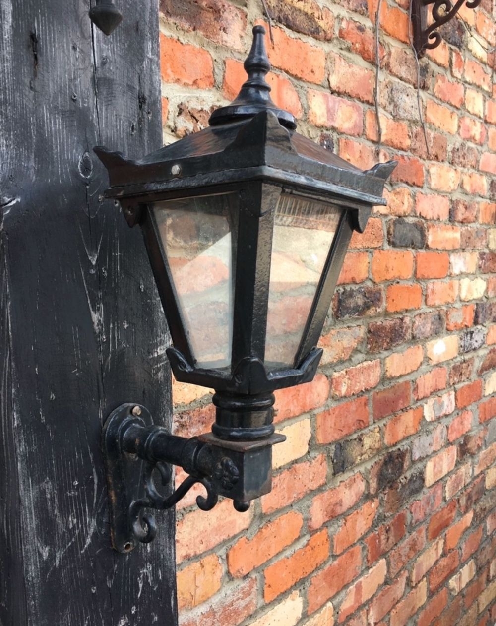 A PAIR OF OUTDOOR WALL LIGHTS, lanterns on decorative brackets. Dimensions: 9 inches deep x 12 inches head height approx. **PLEASE NOTE** This lot is DELIVERY ONLY – the bidder cannot collect the lot. Please contact our in-house recommended delivery services in Lot 1 for a quotation prior to bidding