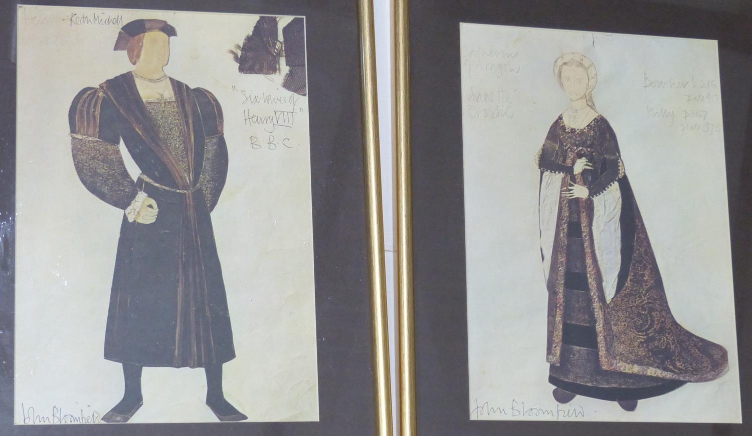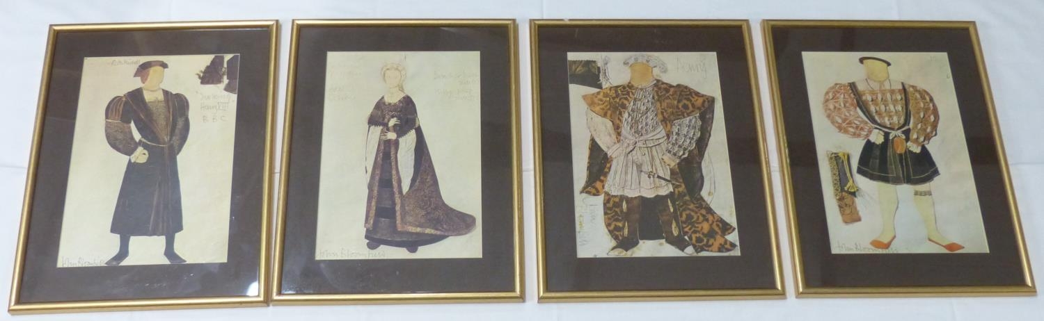 Four gilt framed medieval style pictures by John Bloomfield.