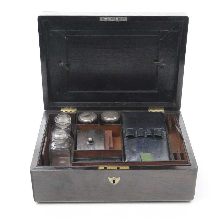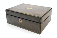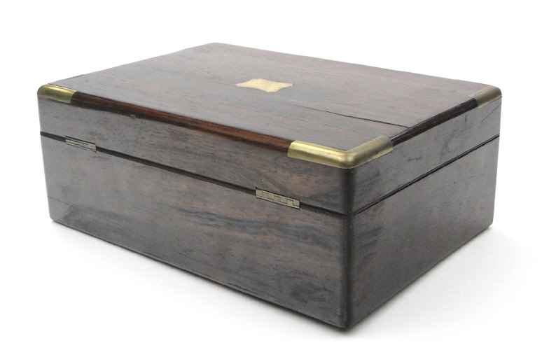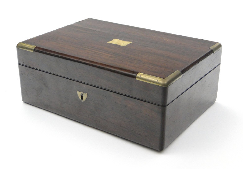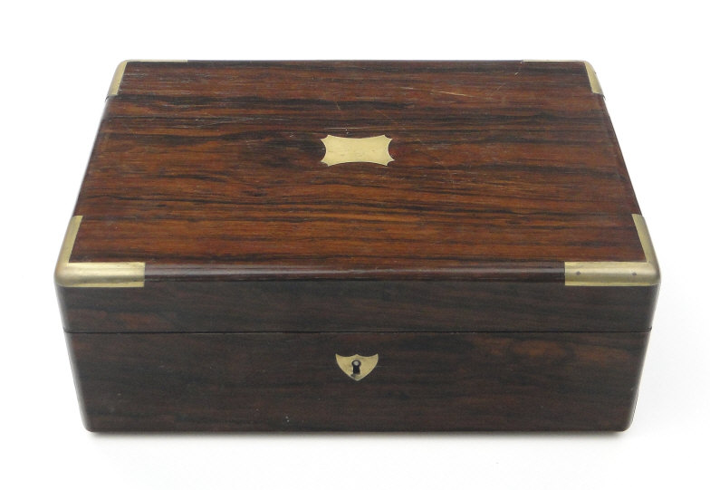 Victorian brass bound rosewood workbox with lift out tray, 28cm in length