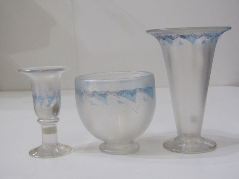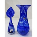 ART GLASSWARE, 2 blue veined art glass vases, Jack in the pulpit vase & various other art glass (11 items)