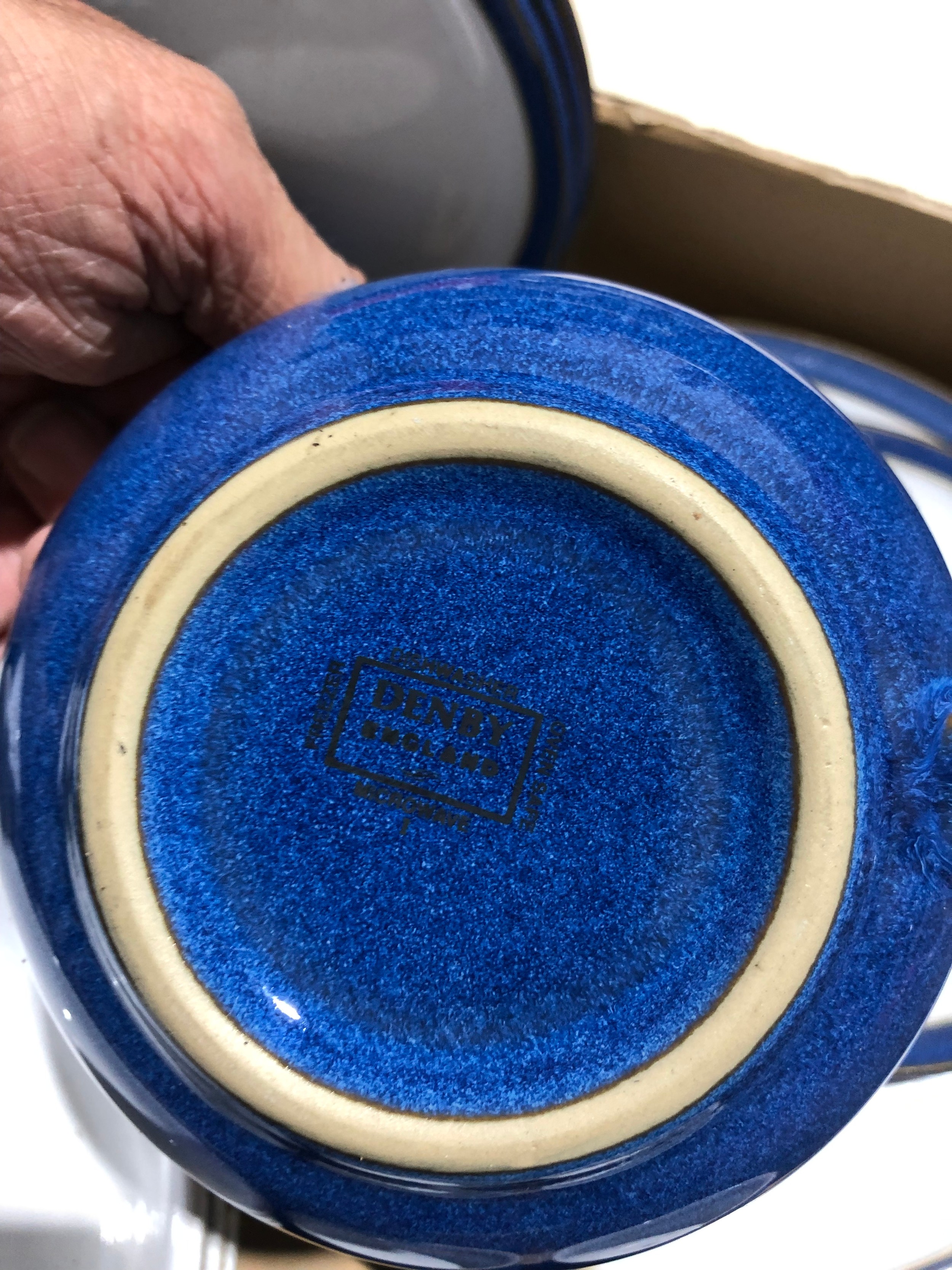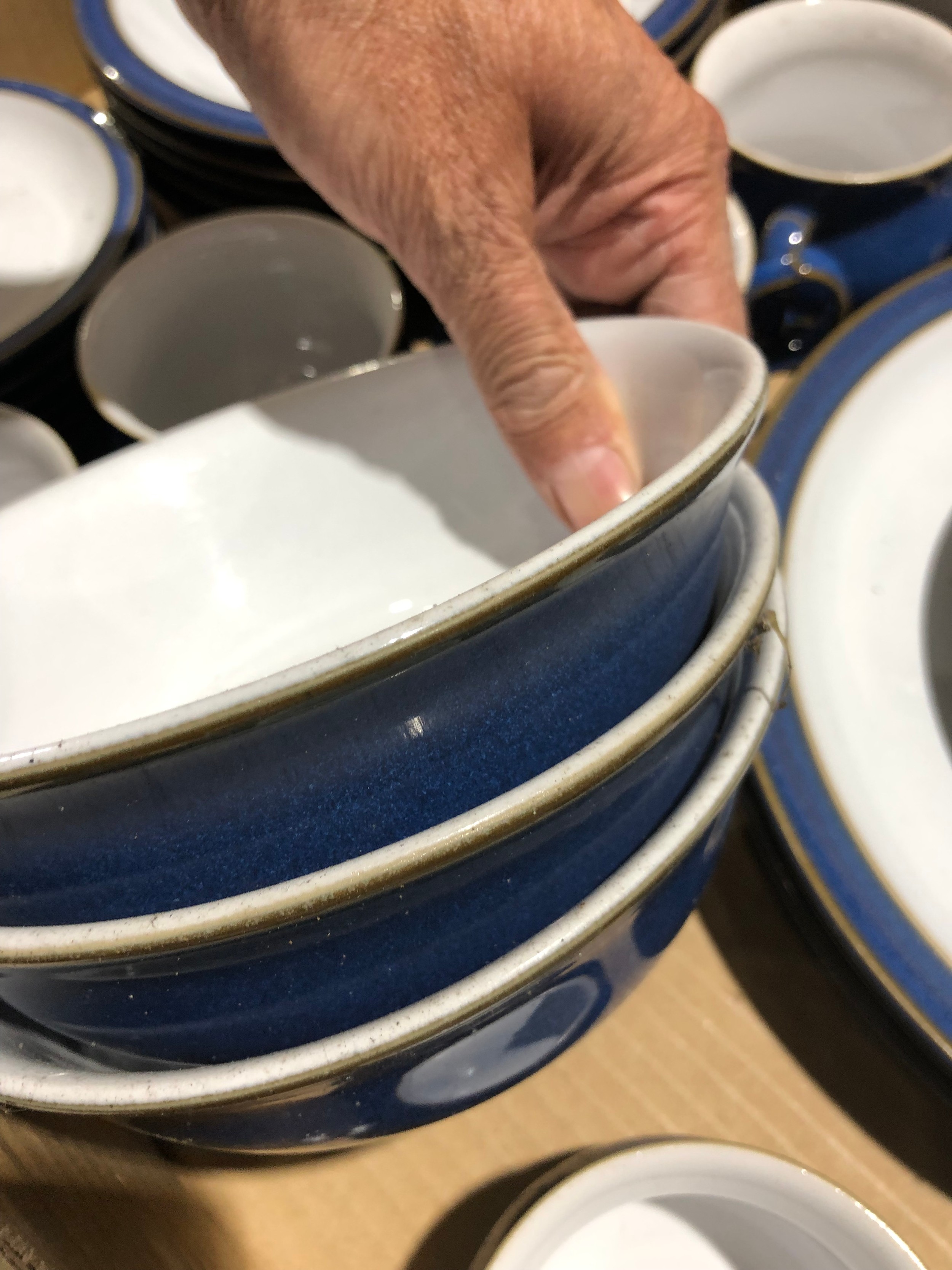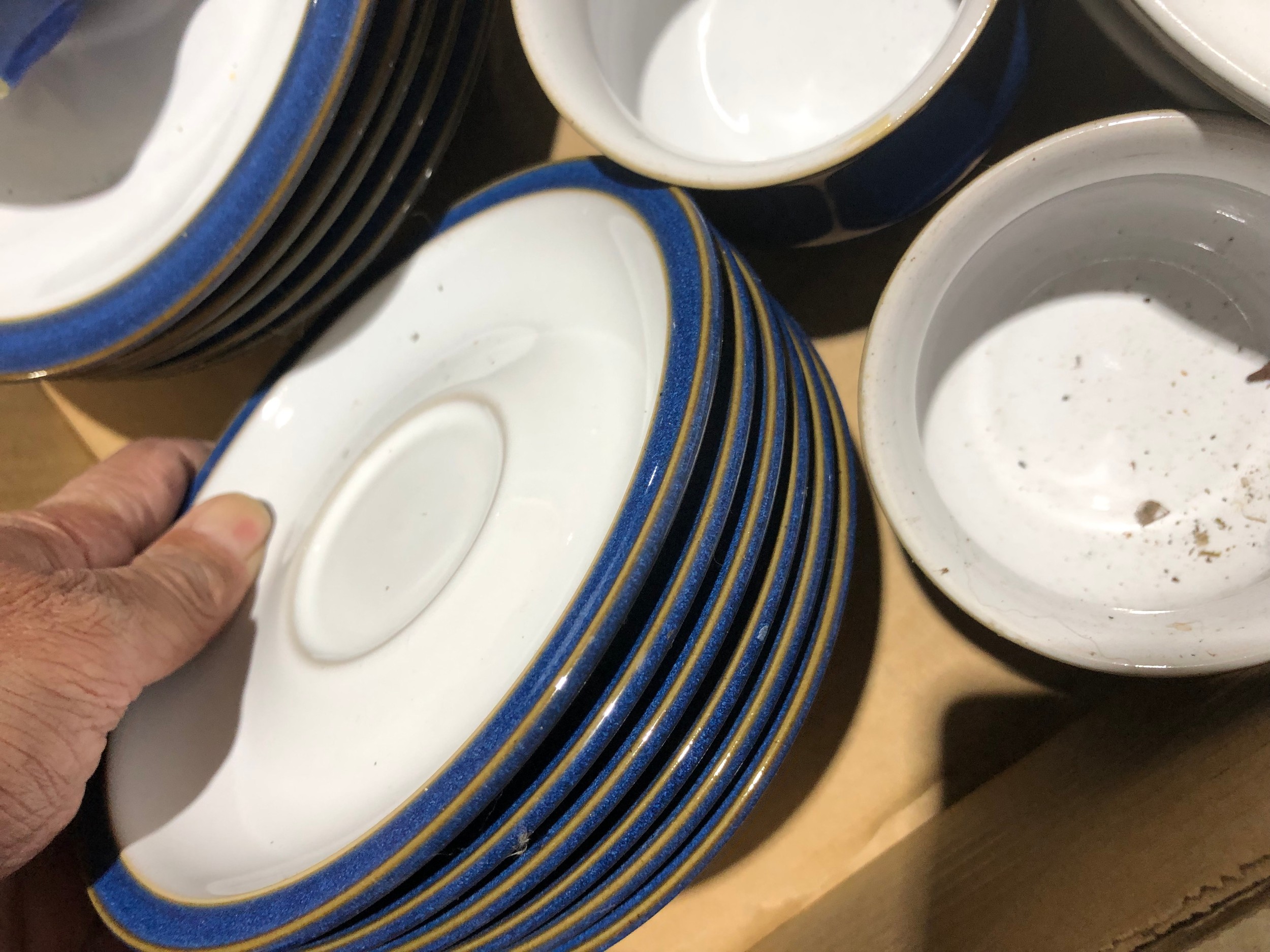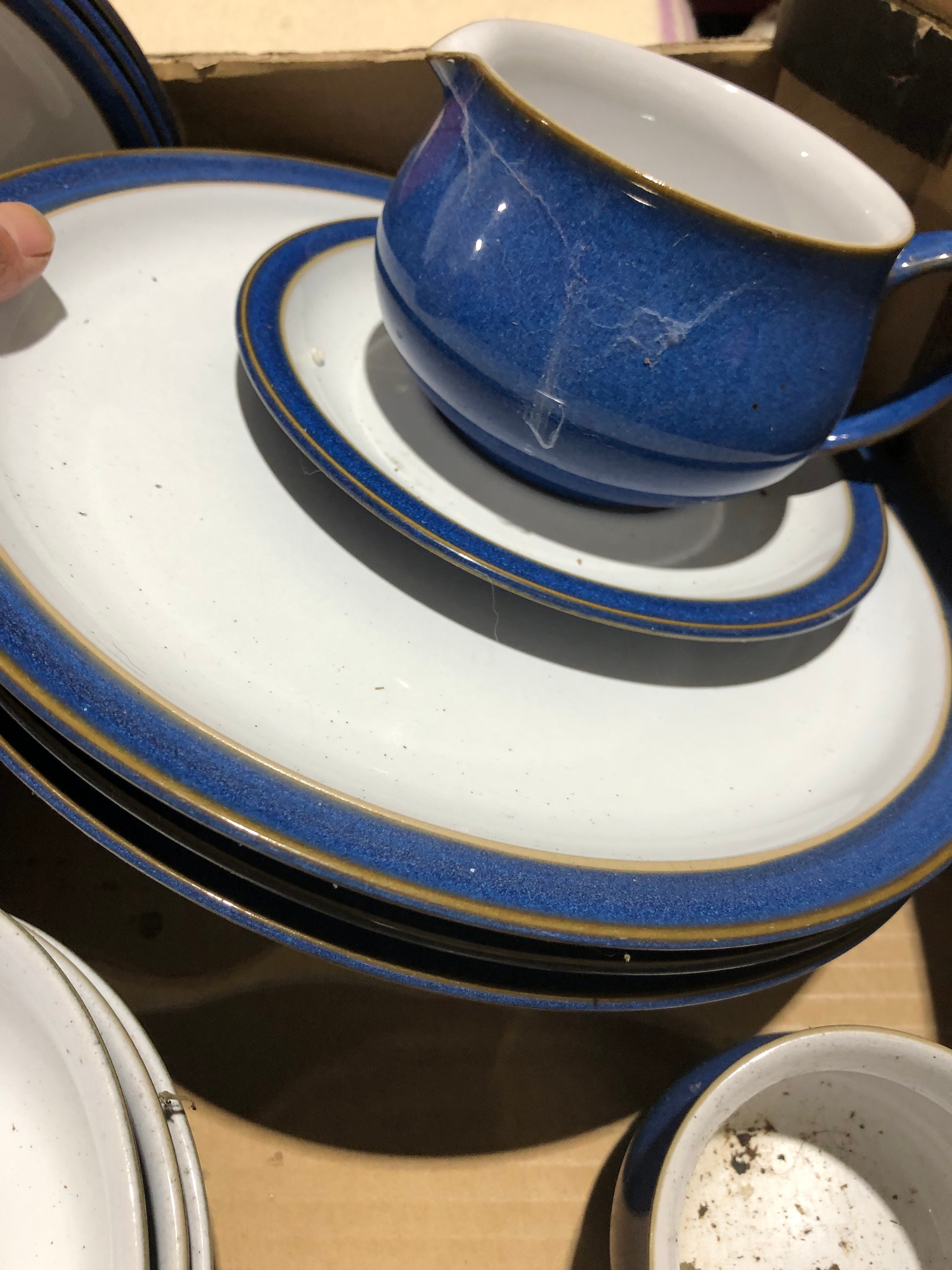Fruit box containing blue Denby Chinaware