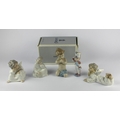 A Lladro porcelain figure group 'A Child's Prayer', 06496, together with a Nao figure of a seated angel with tambourine, a Lladro figure of a recumbent angel, a Lladro figure of a seated angel and Lladro Toy Soldier Christmas ornament, height 13cm (5)