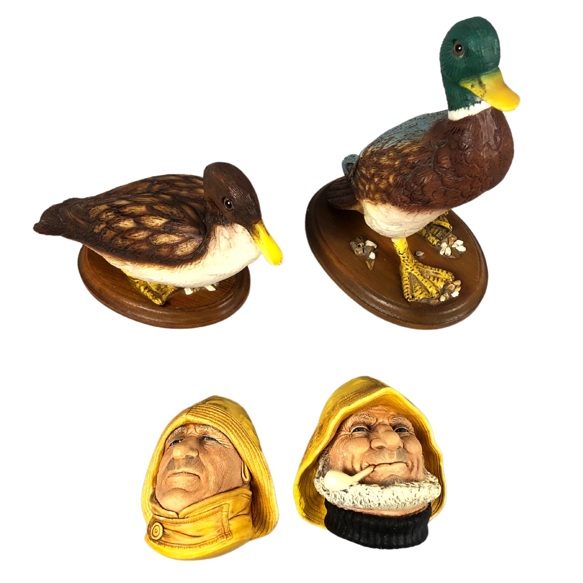 Collection of Ornaments Including Resin Ducks Made in Italy and Two Bossons Chalkware Wall Art.