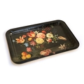 A modern tole style metal tray printed with a basket of flowers, 60cmW