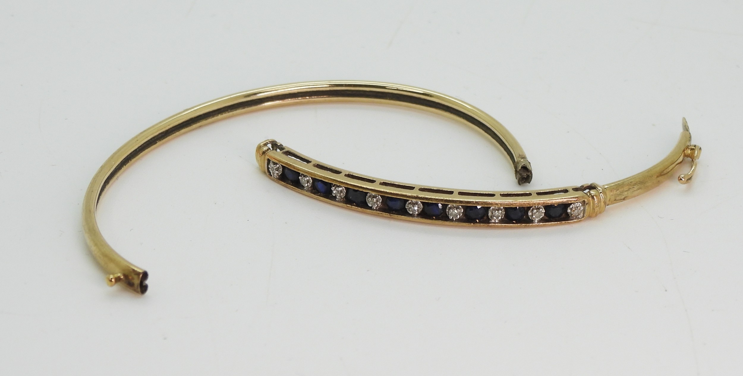 A 9ct gold sapphire and diamond accent bangle (af) weight 5.2gms