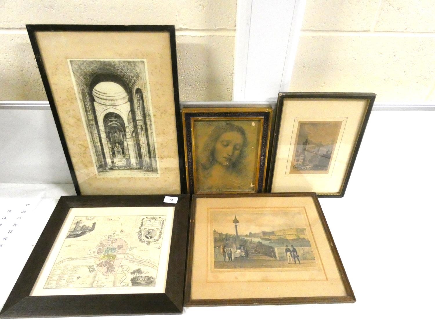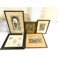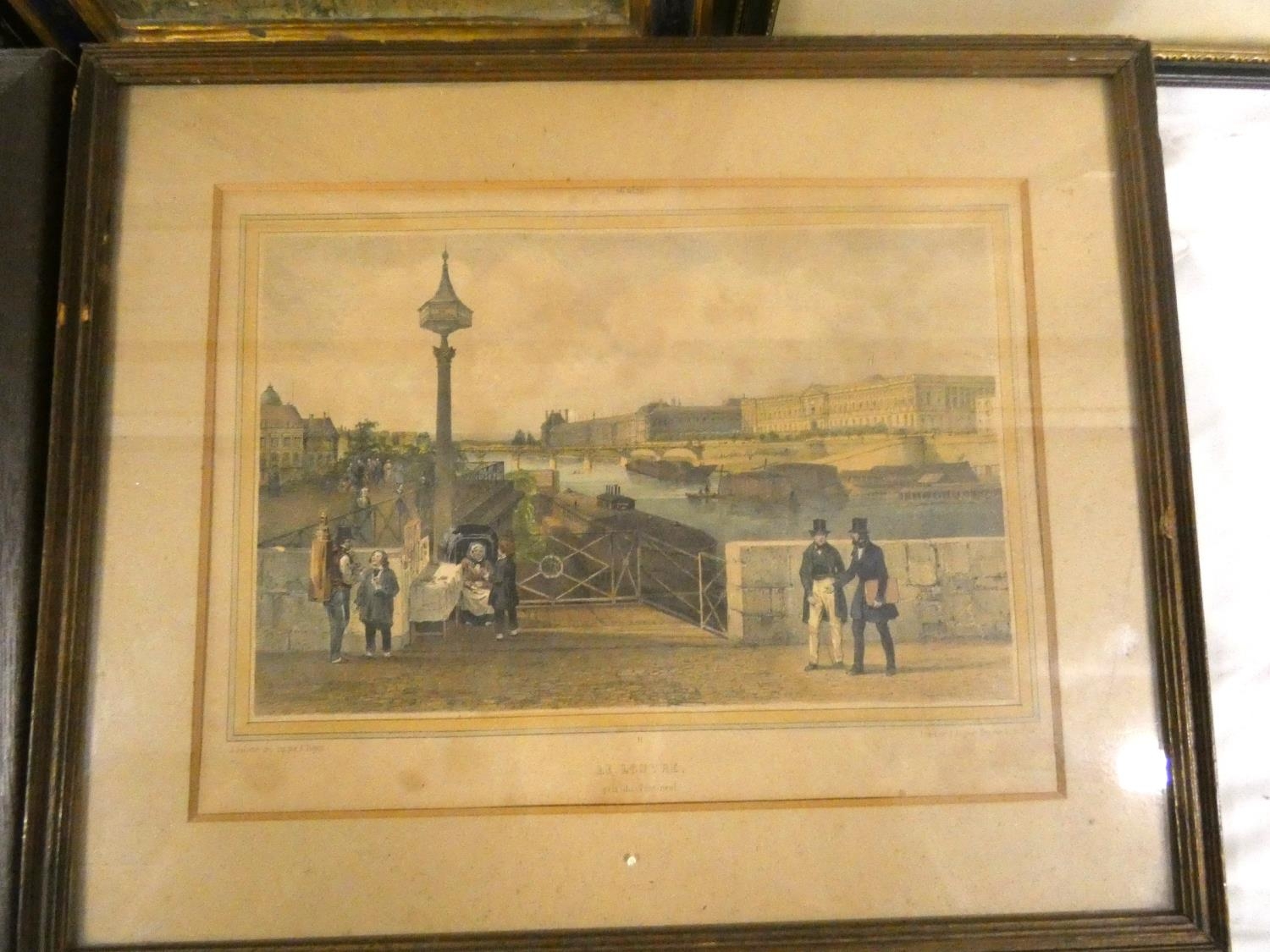 Collection of antique prints to include The Louvre, engraved Map of Paris etc. (5)