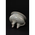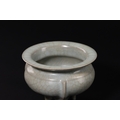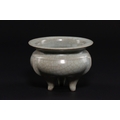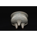 A CHINESE CELADON-GLAZED STONEWARE TRIPOD CENSER. -