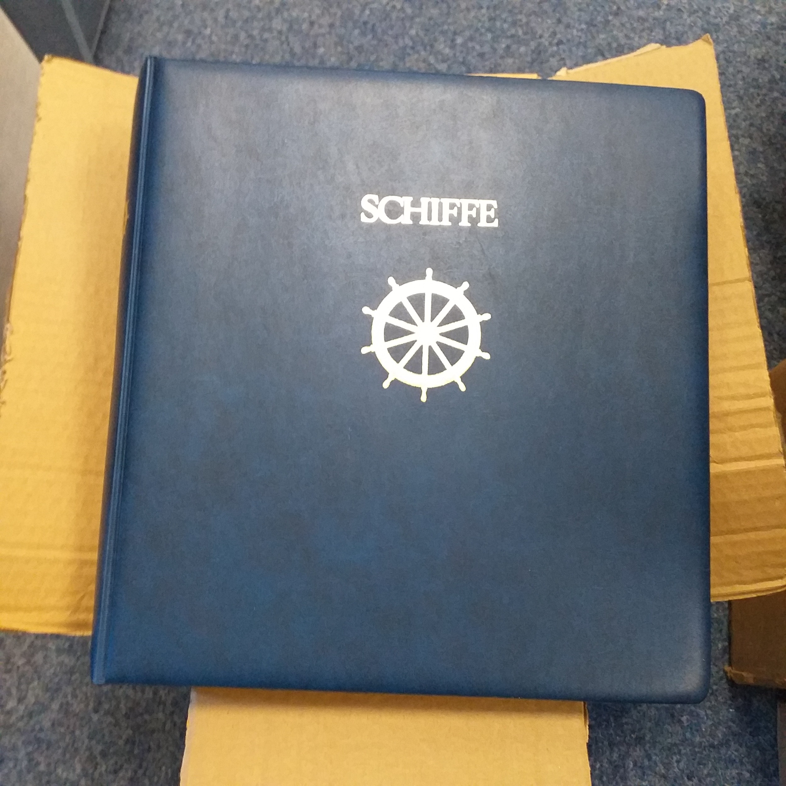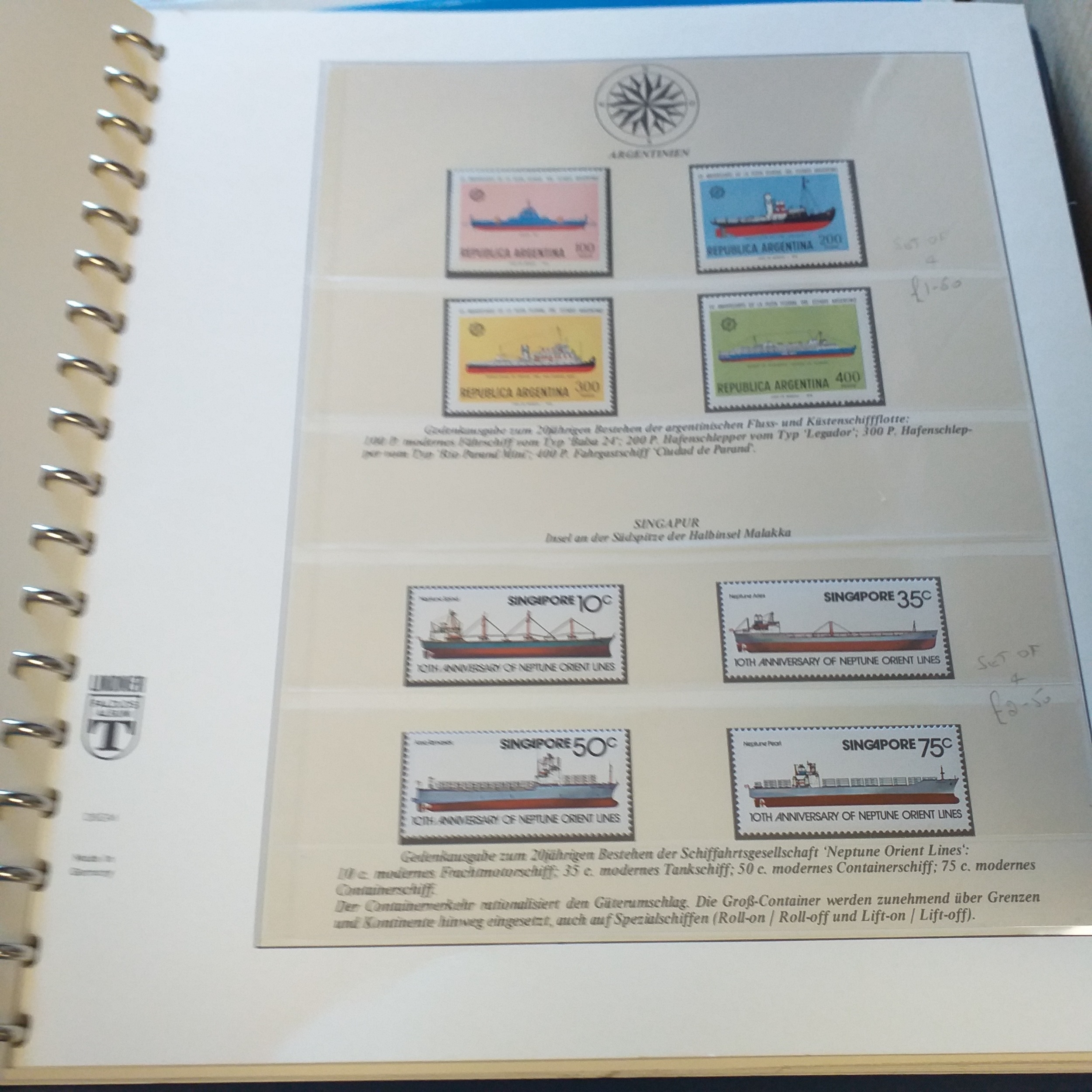 Thematics - box containing 4 Lindner multi ring albums, each housing stamps depicting ships, all stamps on printed hingeless pages mostly appear unmounted mint also includes a few covers with good catalogue value, viewing required.