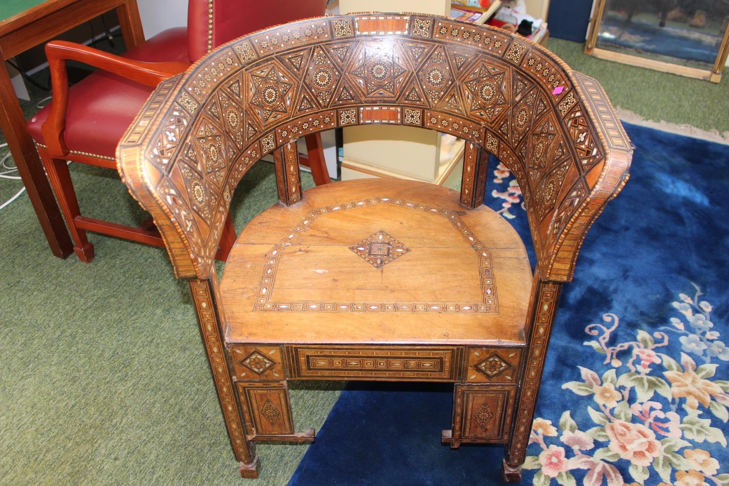 Interesting Late 19thC Moroccan Throne Chair with mother of pearl inlay
