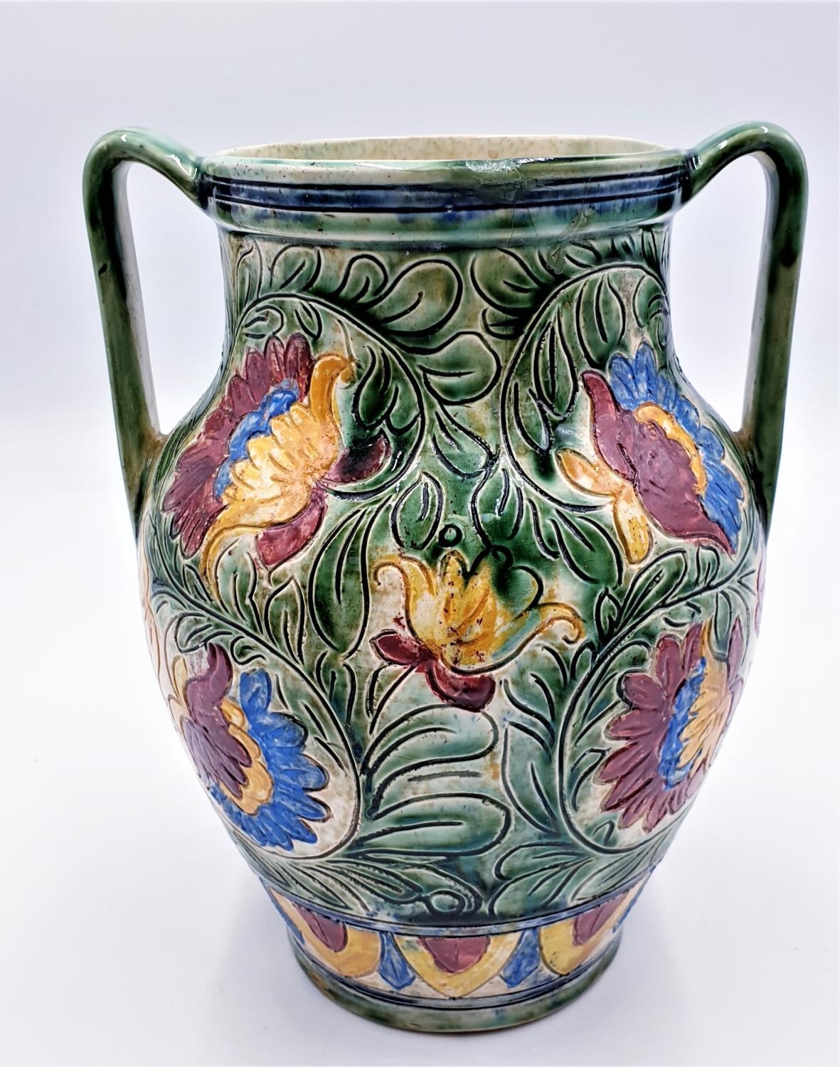 BESWICK Large 23.5 cm (Hand Painted) SGRAFFITO TWIN HANDLED VASE (Old) (A/F)