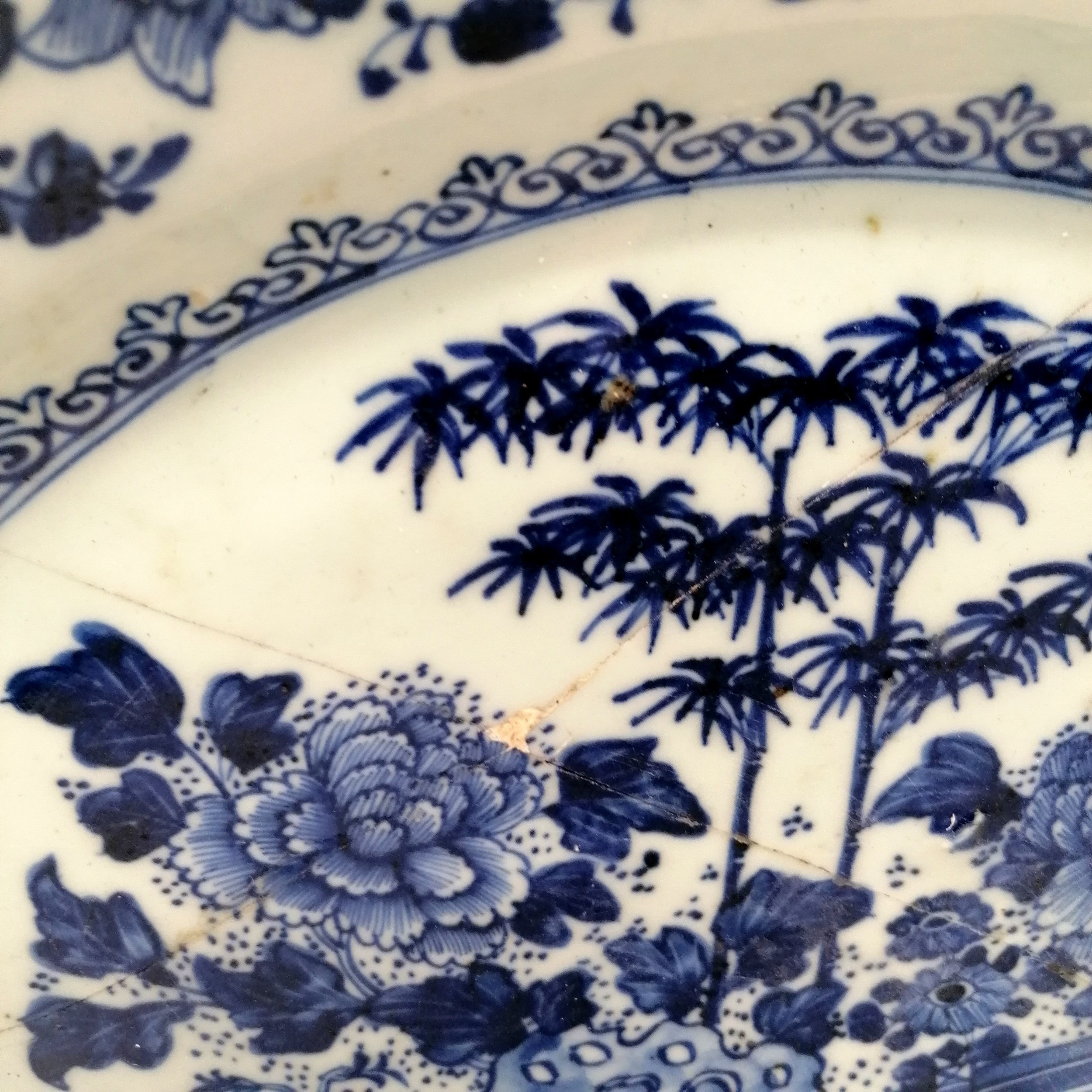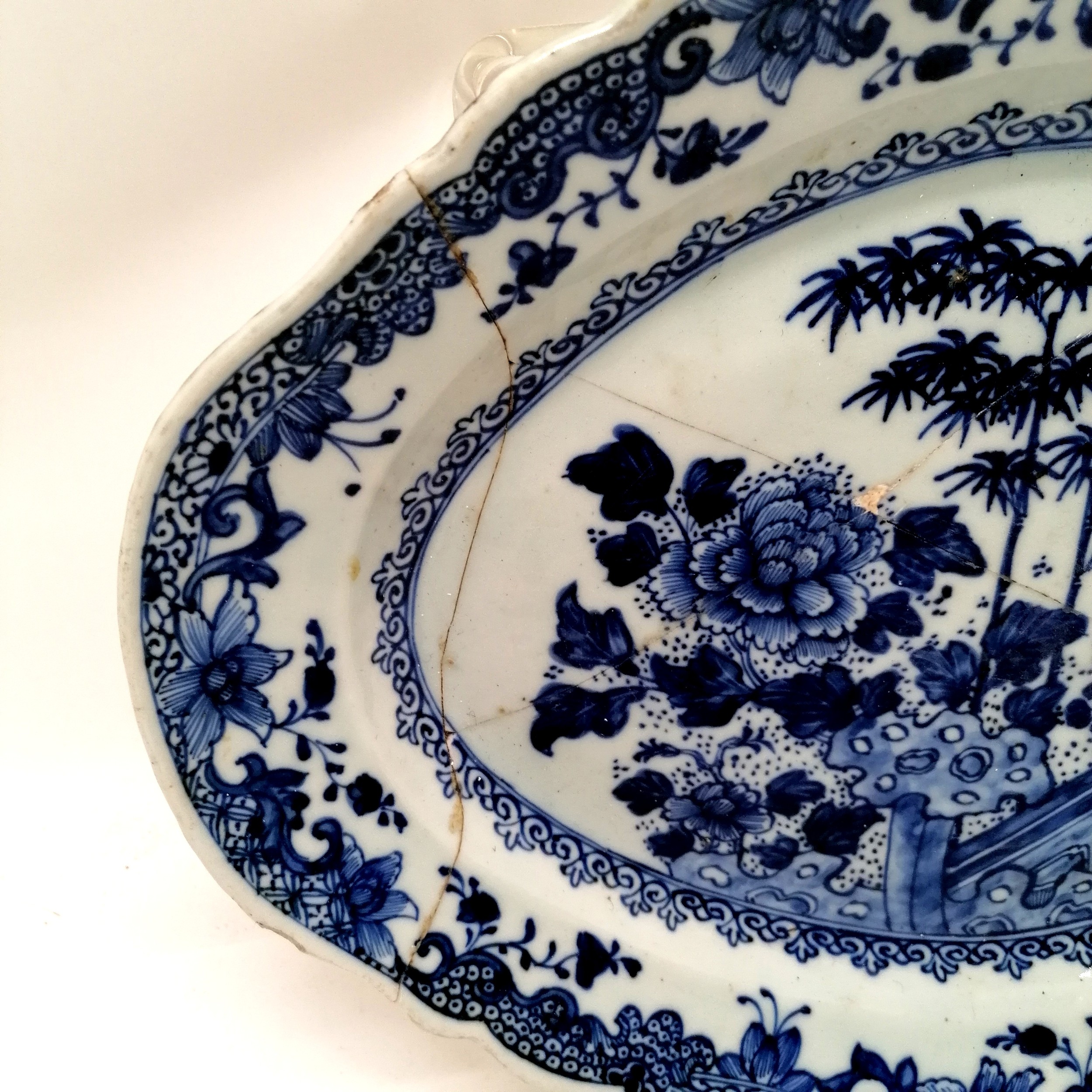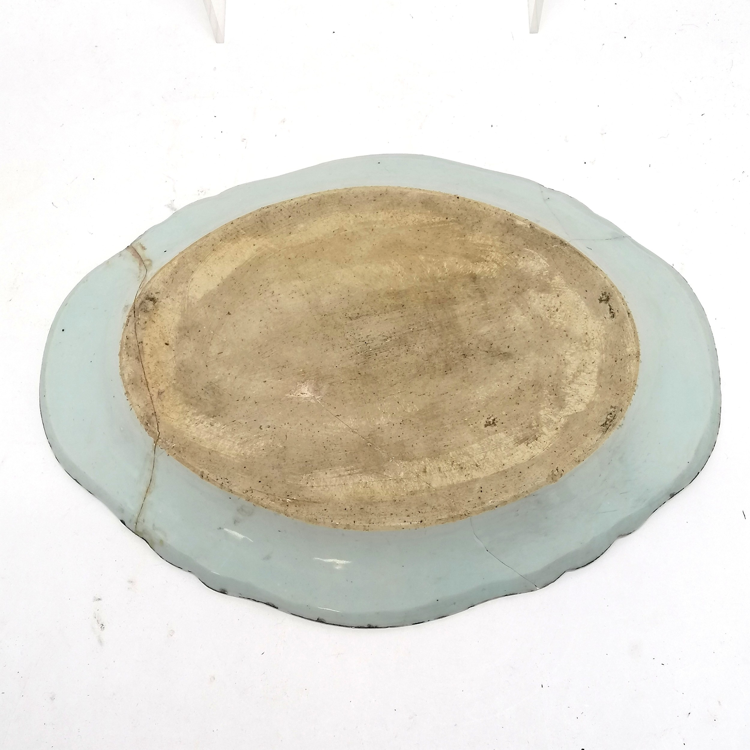 Antique Chinese blue and white export ware serving plate 36cm x 27cm - A/F