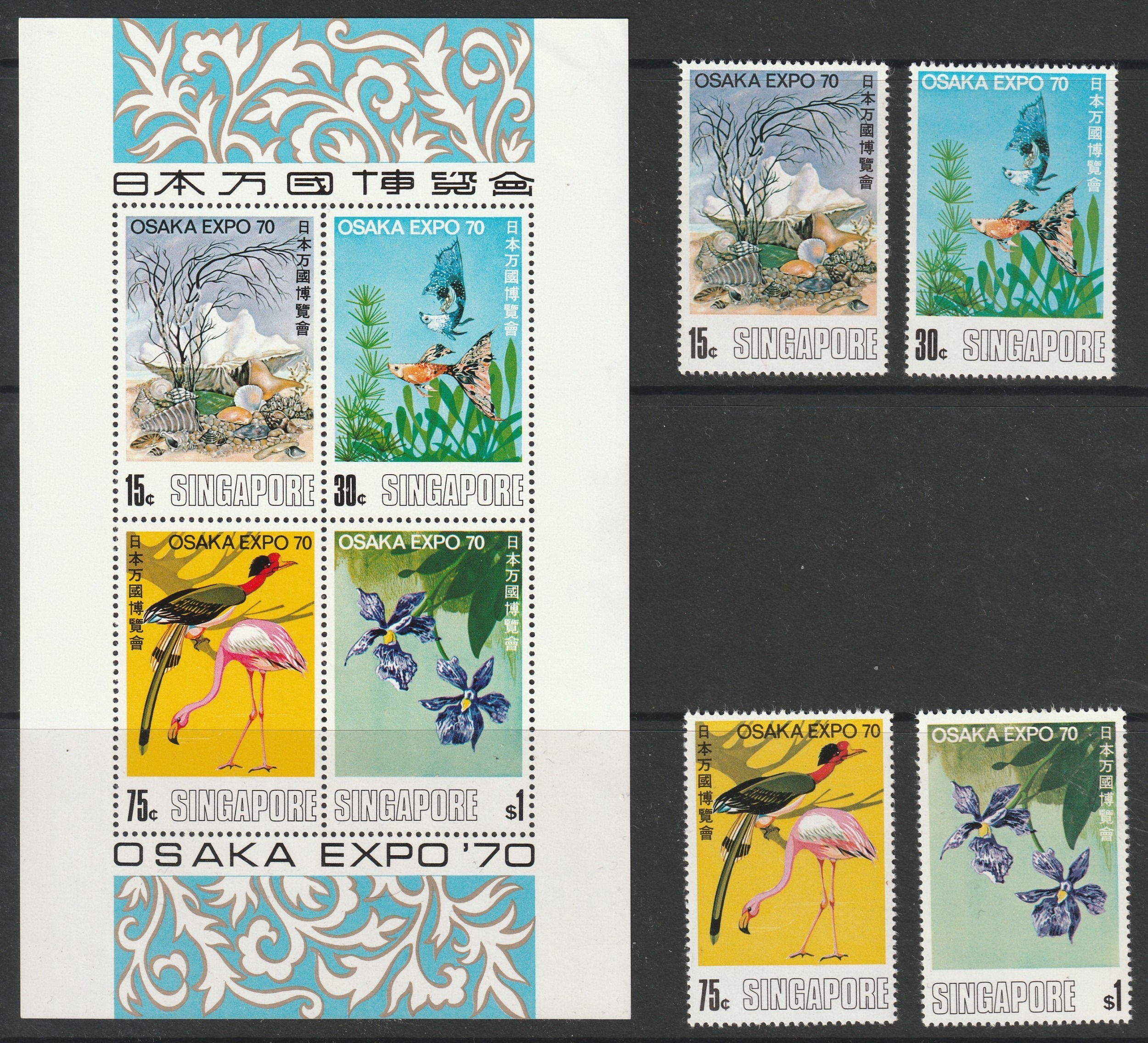 Singapore 1970 SG 128-131 set of 4 and SG MS132 OSAKA EXPO 70 issues un-mounted mint Cat £34